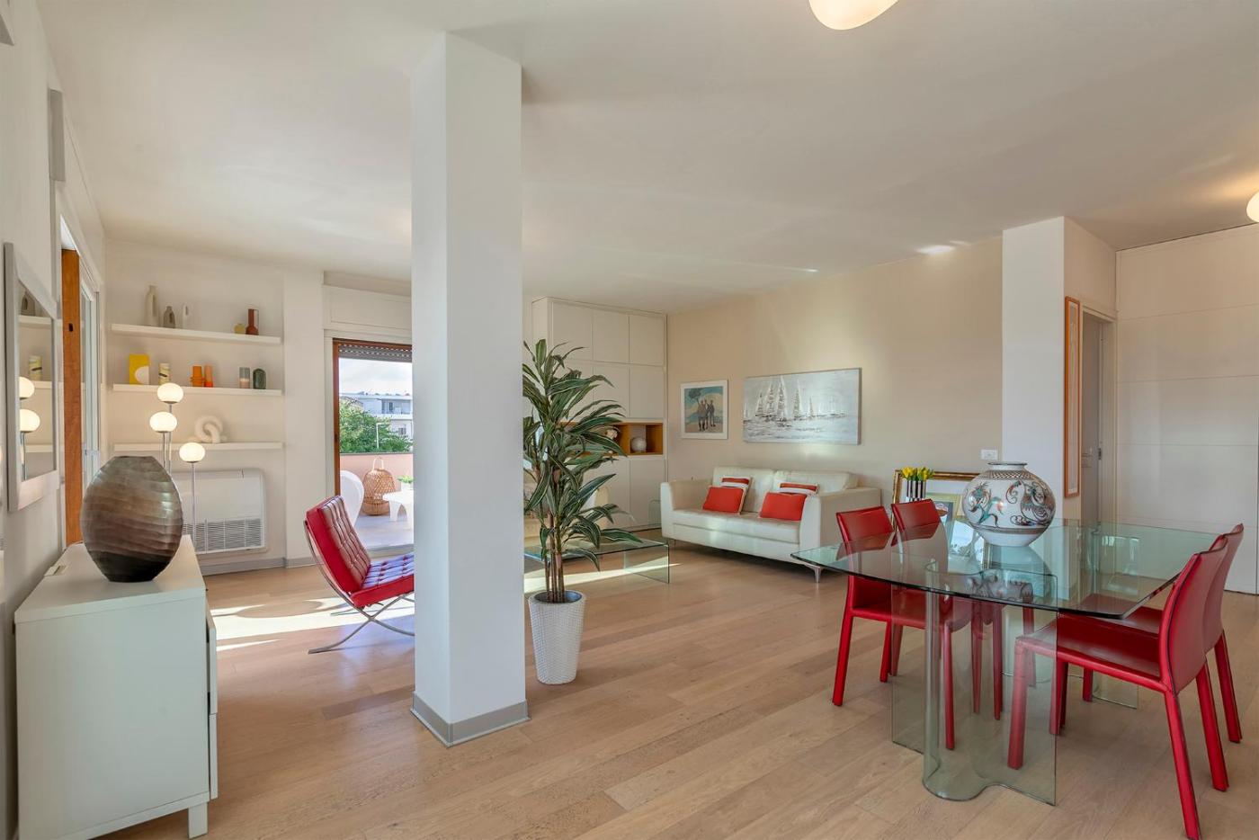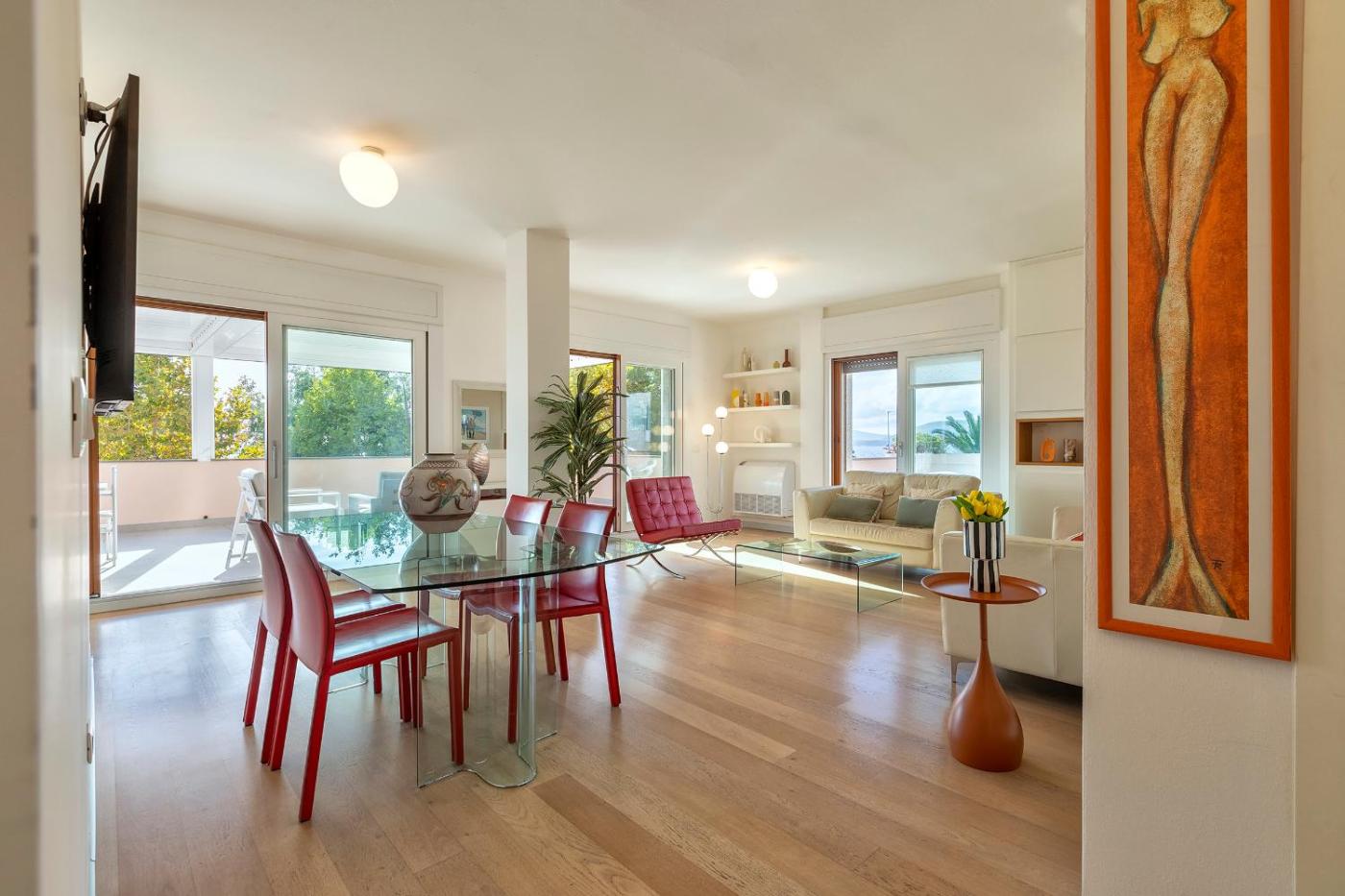Appartamento con 2 Camere da Letto. Featuring 2 bedrooms, this spacious apartment offers 2 bathrooms with a shower, a seating area and terraceyou can relax. Meals can be prepared in the well-fitted kitchen, which comes with a stovetop, a refrigerator, a dishwasher and kitchenware. The air-conditioned apartment provides a flat-screen TV with cable channels, a washing machine, soundproof walls, a tea and coffee maker as well as sea views. The unit has 2 beds.