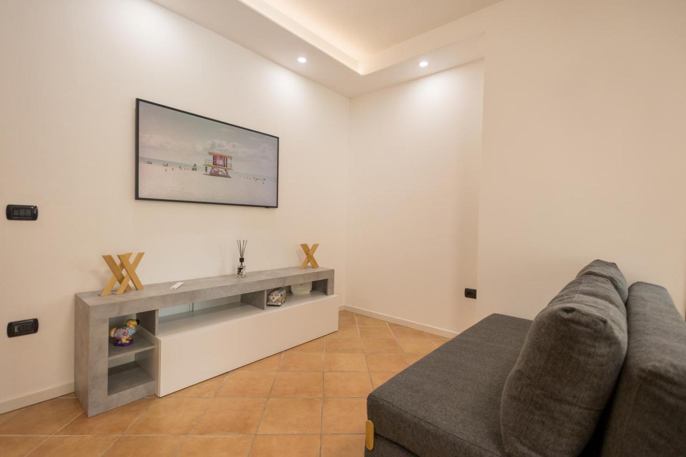 Appartamento con 1 Camera da Letto. Featuring a private entrance, this apartment comprises 2 living rooms, 1 separate bedroom and 1 bathroom with a shower and a bidet. Meals can be prepared in the kitchen, which comes with a stovetop, a refrigerator, a dishwasher and kitchenware. The apartment provides a washing machine, a tea and coffee maker, a seating area, a flat-screen TV with streaming services, as well as garden views. The unit offers 2 beds.