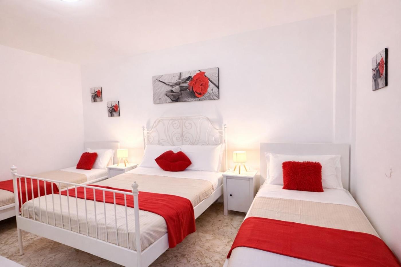 Appartamento con 3 Camere da Letto. Questo ampio appartamento comprende un ingresso indipendente, 3 camere da letto, un’area salotto e 2 bagni con doccia e bidet. Troverete una cucina ben attrezzata con piano cottura, frigorifero, utensili e forno. Questo appartamento climatizzato è dotato di TV a schermo piatto con servizi di streaming, lavatrice,per la preparazione di tè e caffè, zona pranzo e vista sul giardino. L’alloggio presenta 6 letti.
