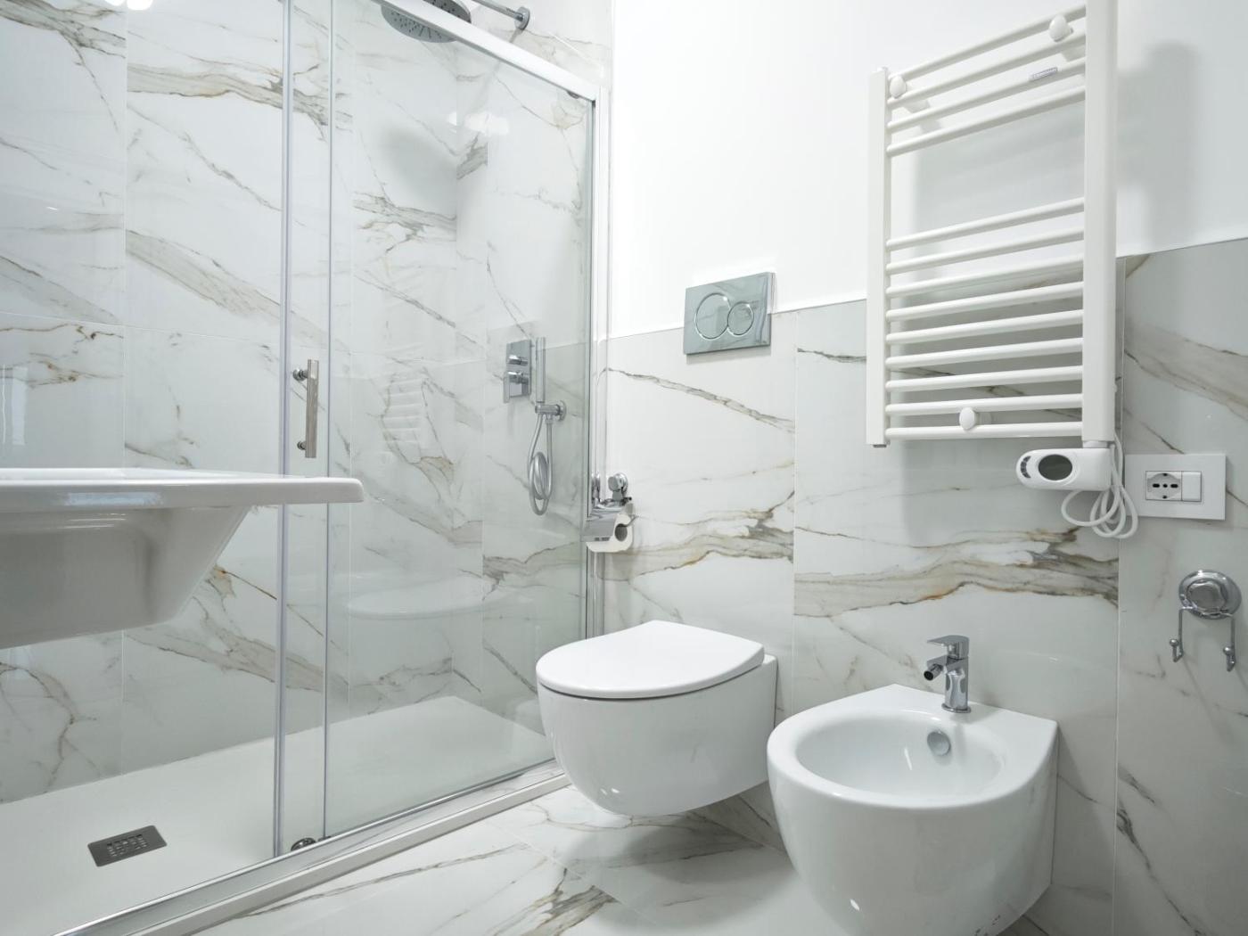 Monolocale con Balcone. The studio features air conditioning, a dining area, as well as a private bathroom boasting a shower and a bidet. In the kitchen, guests will find a stovetop, a refrigerator and kitchenware. Featuring a balcony, this studio also offers heating and a flat-screen TV. The unit has 1 bed.