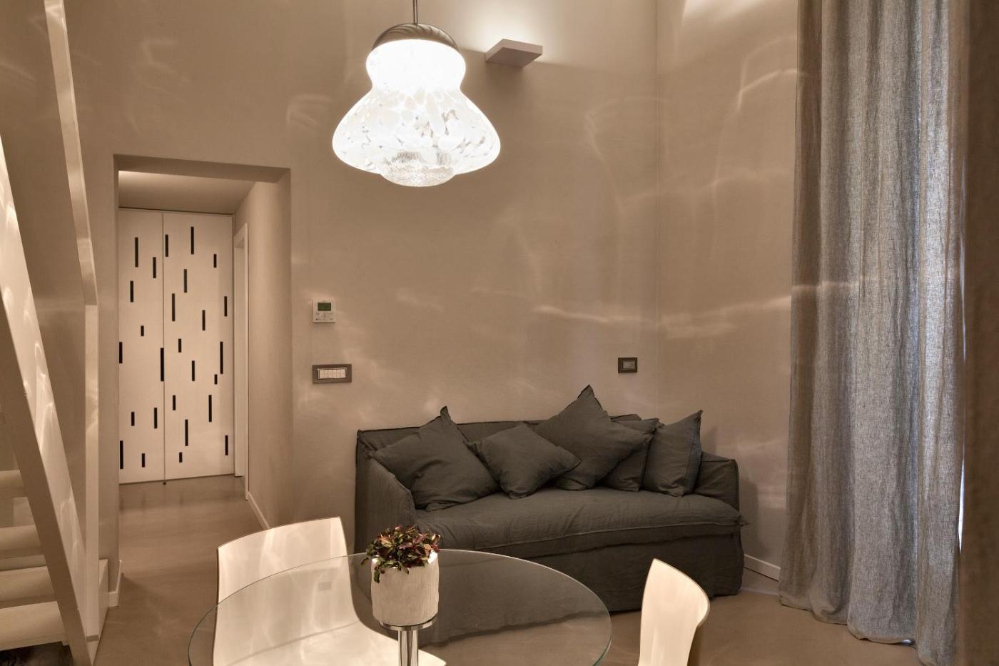 Monolocale Standard - Su 2 Livelli. Set on 2 levels, this studio has a living area downstairs and a sleeping area upstairs. With wood-beamed ceilings and exposed brick walls, it features air conditioning, free Wi-Fi and a 32" LED TV with Sky channels. Coffee machine and kettle. ;