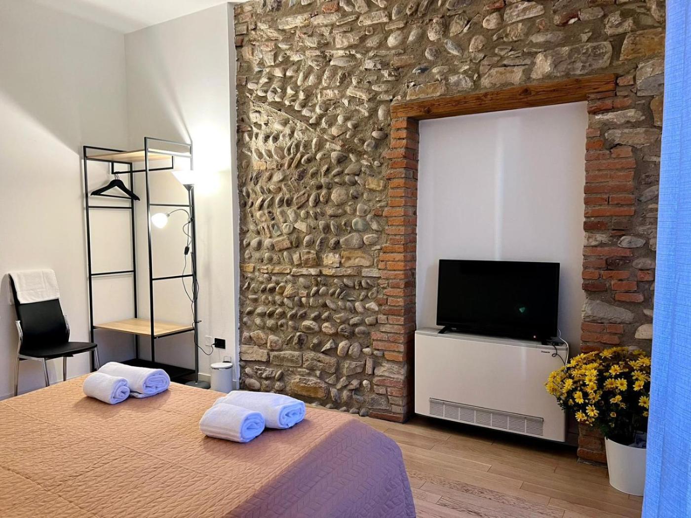 Camera Matrimoniale con Bagno in Comune. Camera matrimoniale climatizzata conper la preparazione di tè e caffè, terrazza affacciata sul cortile interno e bagno in comune munito di doccia. L’alloggio presenta 1 letto. ;