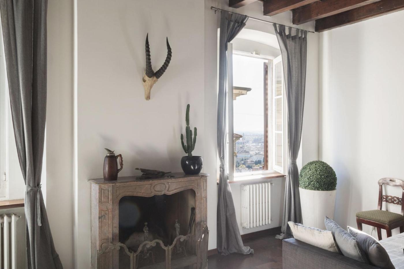 Casa Vacanze. The fireplace is the standout feature of this holiday home. Boasting 1 bedroom, this spacious holiday home has 2 bathrooms with a bath, a seating area and terraceyou can relax. Guests can make meals in the kitchen that is fitted with a stovetop, a refrigerator, kitchenware and a microwave. The air-conditioned holiday home offers a TV, a washing machine, a minibar, a tea and coffee maker as well as city views. The unit offers 2 beds.