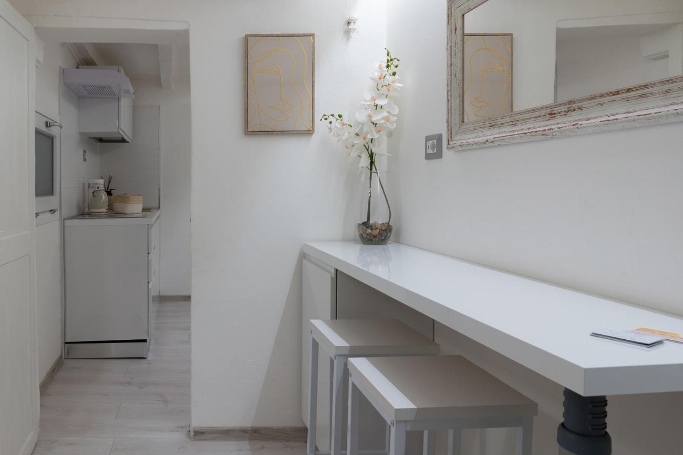 Questo appartamento con aria condizionata dispone di 1 camera da letto e 1 bagno con bidet, doccia edi cortesia. La cucina ha minibar, piano cottura, macchina da caffè e bollitore elettrico.