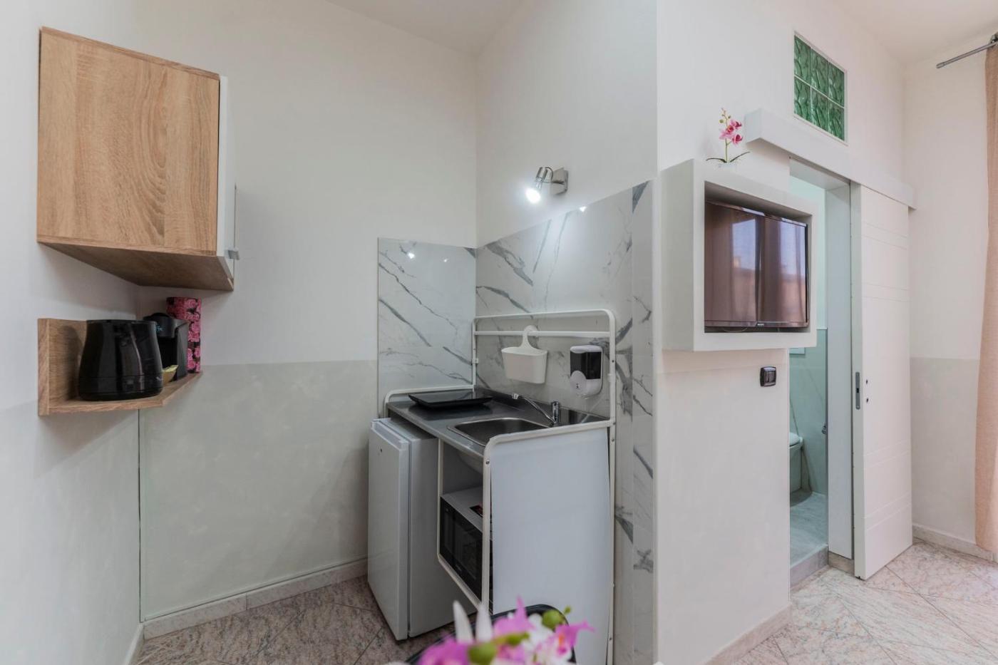 Camera Matrimoniale con Bagno Privato. The double room provides air conditioning, a tea and coffee maker, as well as a private bathroom featuring a shower and a hairdryer. Meals can be prepared in the kitchenette, which comes with a stovetop, a refrigerator, kitchenware and a microwave. Boasting a balcony, this double room also features heating and a flat-screen TV. The unit offers 1 bed. ;