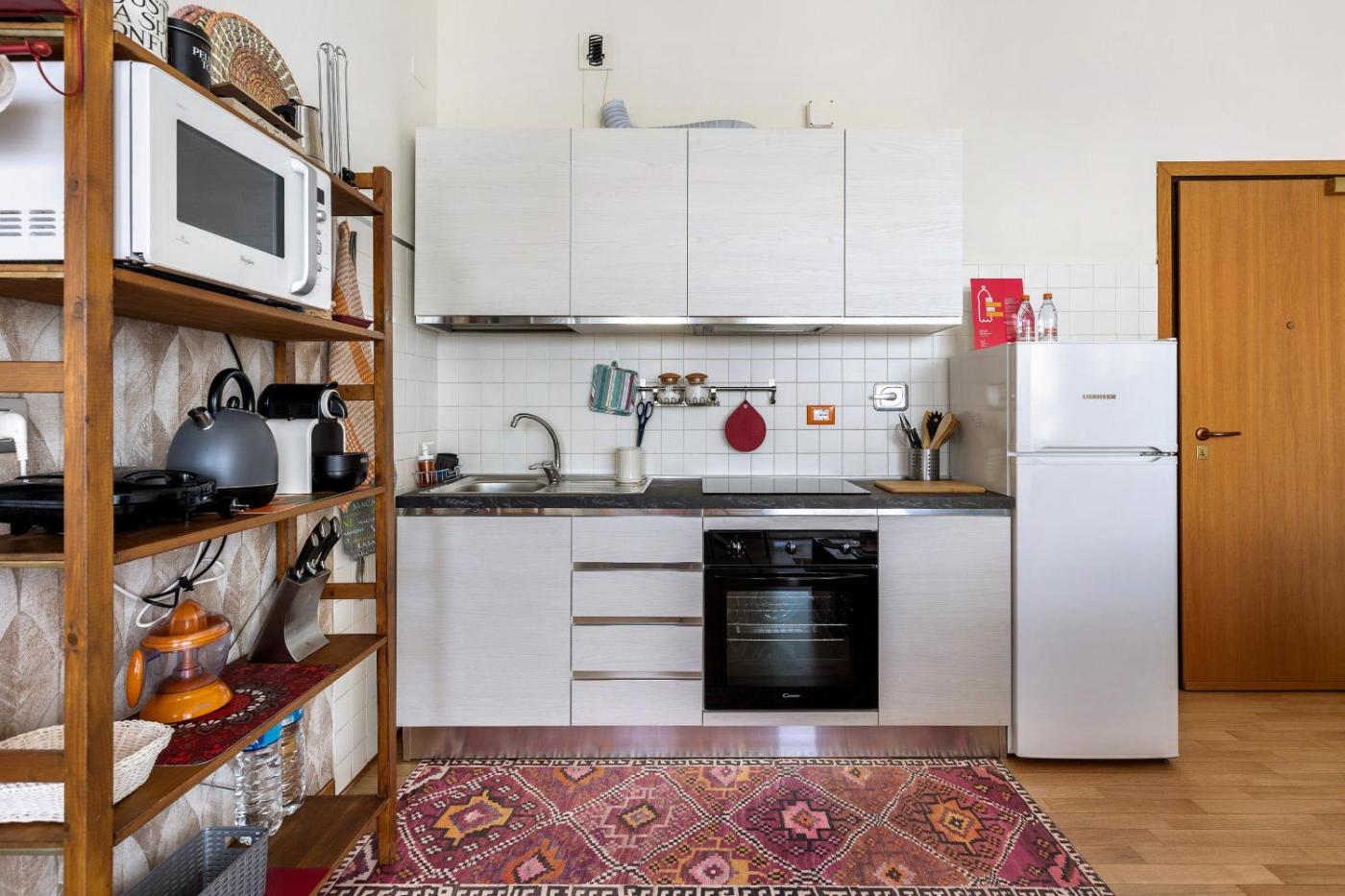 Questo appartamento con aria condizionata comprende 1 camera da letto, un soggiorno, una cucina con utensili, forno e macchina da caffè, e 1 bagno con bidet e doccia. In dotazione troverete una TV.