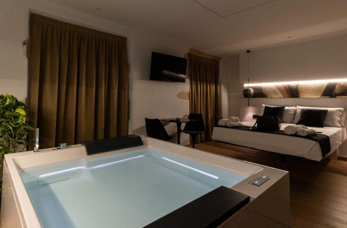 Camera King con Vasca Idromassaggio. This double room features a hot tub. Providing free toiletries, this double room includes a private bathroom with a walk-in shower, a bath and a bidet. The spacious air-conditioned double room provides a flat-screen TV with streaming services, soundproof walls, a tea and coffee maker, a wardrobe as well as city views. The unit offers 1 bed. ;