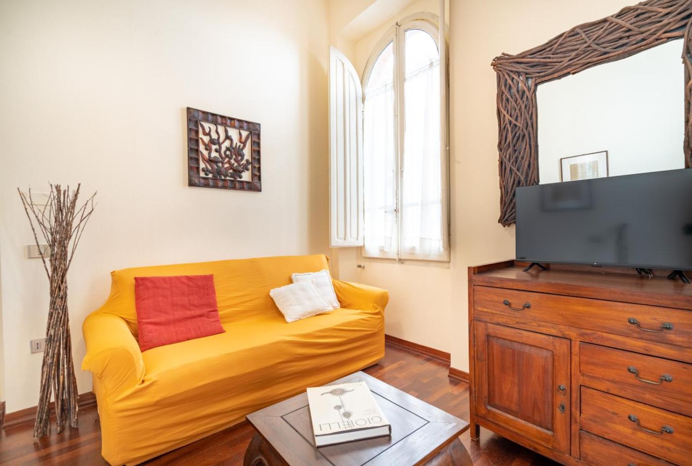 Questo appartamento comprende 1 camera da letto, 1 bagno e un soggiorno.