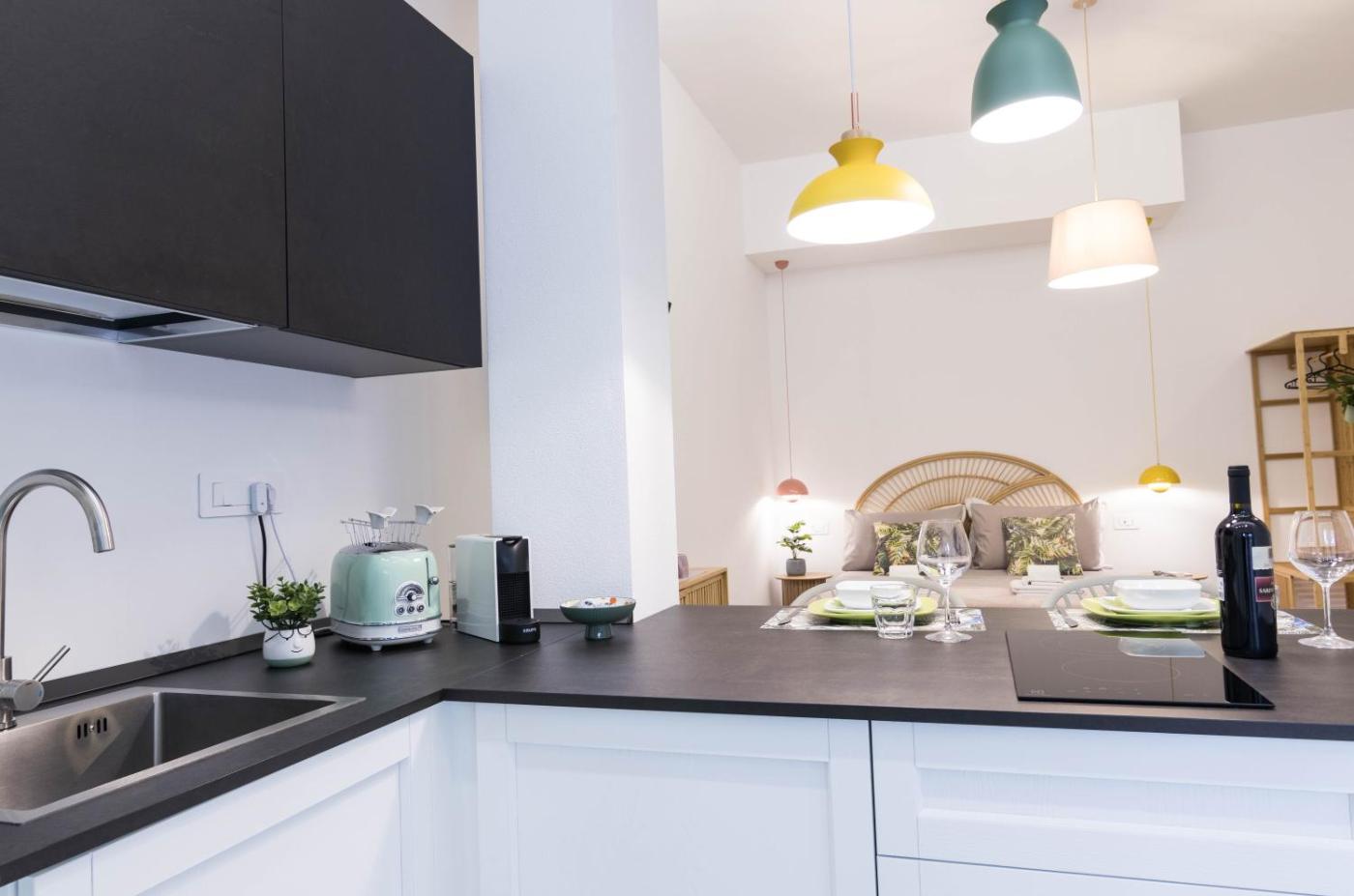 Monolocale Deluxe. Meals can be prepared in the well-fitted kitchen, which comes with a stovetop, a refrigerator, a dishwasher and kitchenware. The studio offers air conditioning, a washing machine, a terrace with ancourtyard view as well as a private bathroom featuring a shower. The unit offers 1 bed. ;