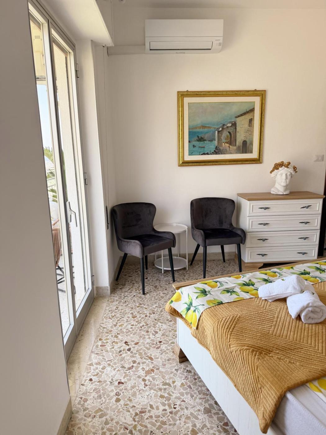 Appartamento con 3 Camere da Letto. Boasting a private entrance, this air-conditioned apartment comes with 1 living room, 3 separate bedrooms and 1 bathroom with a shower and a hairdryer. The apartments kitchen, which has a stovetop and an electric kettle, is available for cooking and storing food. The spacious apartment features a flat-screen TV, a minibar, a seating area, a dining area as well as sea views. The unit has 4 beds.