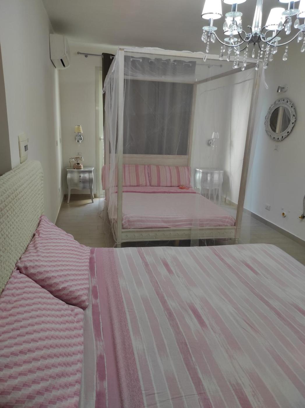 Camera Matrimoniale Deluxe con Vasca. The spacious double room offers air conditioning, a washing machine, as well as a private bathroom featuring a walk-in shower and a bath. Boasting a balcony, this double room also features a wardrobe, a tiled floor and a flat-screen TV. The unit offers 2 beds. ;