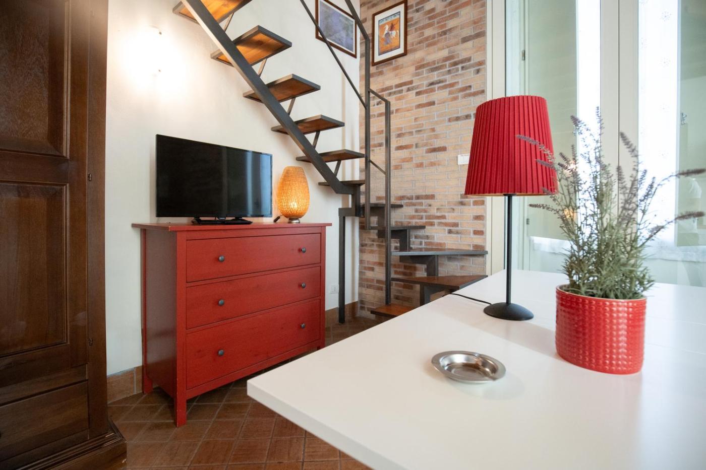 Appartamento su 2 Livelli. Set on 2 levels, this air-conditioned suite features a seating area with satellite TV, sofa and a fully equiped kitchen on the ground floor. The bedroom is on the mezzanine level. Wi-Fi is free and it features a balcony.+ ;