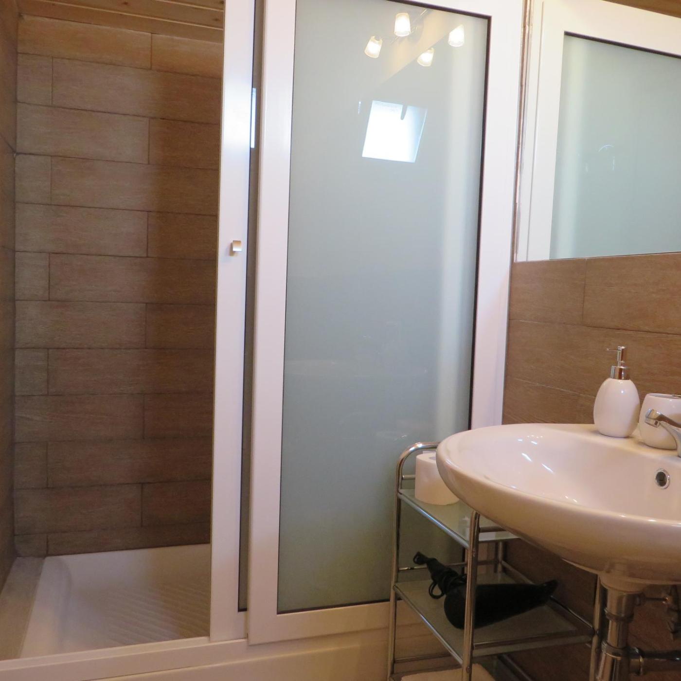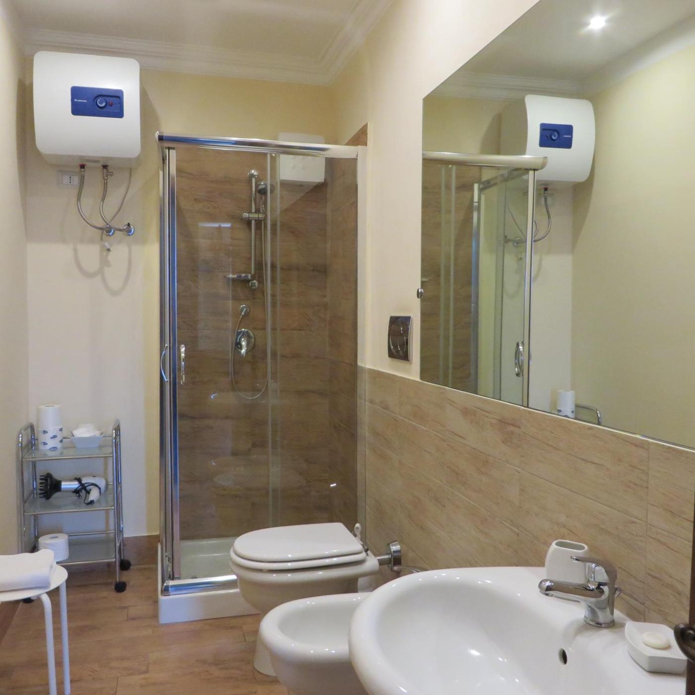 In ogni alloggio troverete un bagno privato con doccia,di cortesia e asciugacapelli.