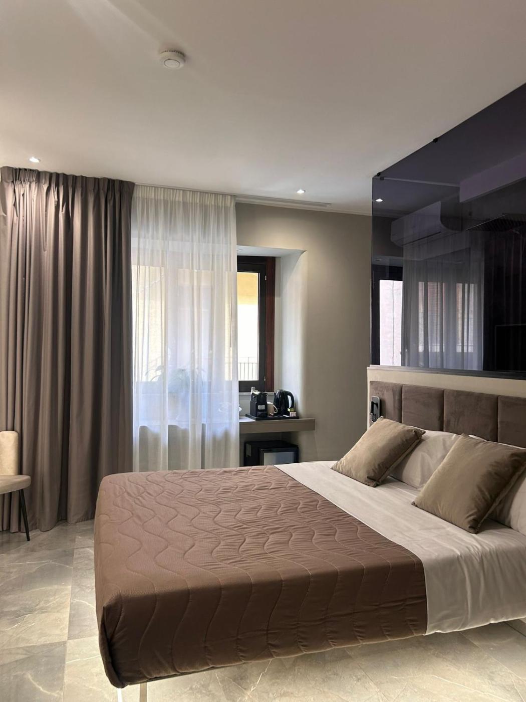 Camera King con Vasca Idromassaggio. This double rooms special feature is the hot tub. Providing free toiletries and bathrobes, this double room includes a private bathroom with a bath, a shower and a bidet. The air-conditioned double room provides a flat-screen TV with streaming services, soundproof walls, a minibar, a tea and coffee maker as well as a quiet street view. The unit offers 1 bed. ;