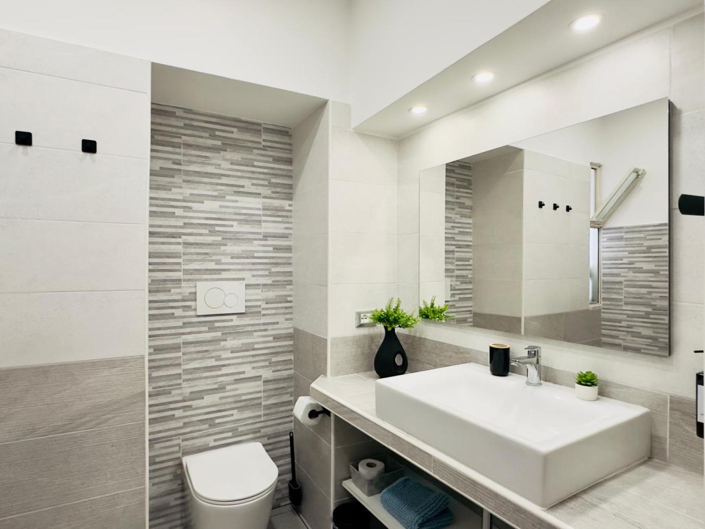 Appartamento con 1 Camera da Letto e Balcone. Featuring a private entrance, this air-conditioned apartment consists of 1 living room, 1 separate bedroom and 1 bathroom with a shower and a bidet. The fully equipped kitchen features a stovetop, a refrigerator, kitchenware and an oven. The spacious apartment provides a flat-screen TV with streaming services, a washing machine, soundproof walls, a tea and coffee maker as well as city views. The unit offers 2 beds.