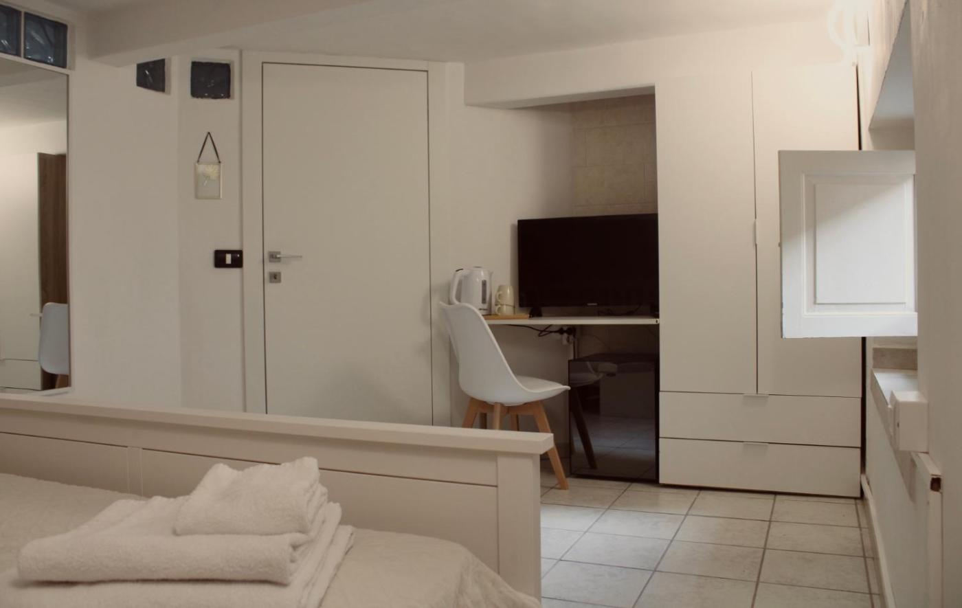 Camera Matrimoniale con Bagno in Comune. Providing free toiletries, this double room includes a shared bathroom with a shower, a bidet and a hairdryer. The air-conditioned double room provides a flat-screen TV with streaming services, a minibar, a wardrobe, an electric kettle as well as city views. The unit offers 1 bed. ;