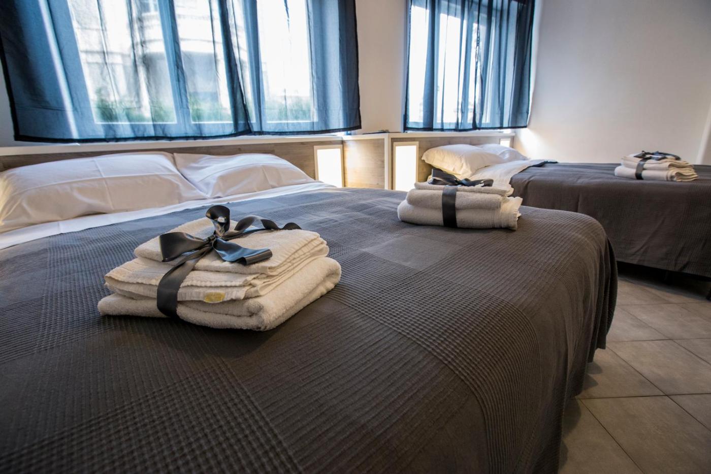 Camera Quadrupla Deluxe. Featuring free toiletries, this quadruple room includes a private bathroom with a shower, a bidet and a hairdryer. The air-conditioned quadruple room features a flat-screen TV, a minibar, a tea and coffee maker, a seating area as well as a quiet street view. The unit has 2 beds. ;