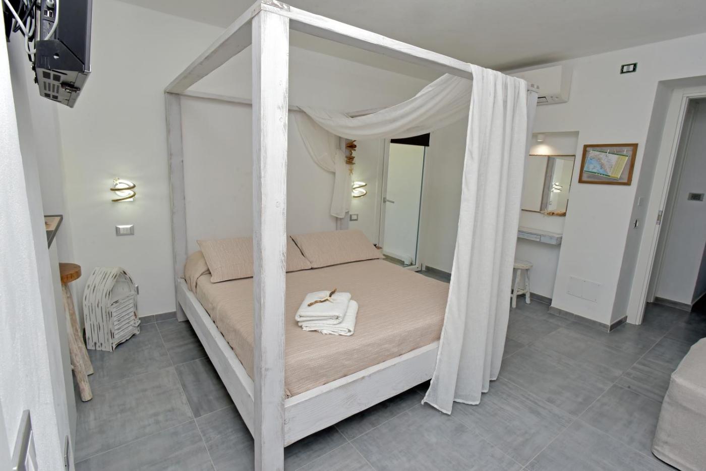 Camera Deluxe Matrimoniale con Vista Mare. Featuring free toiletries, this double room includes a private bathroom with a shower, a bidet and a hairdryer. This double room has air conditioning, flat-screen TV with streaming services, sea views, as well as winechampagne for guests. The unit has 1 bed. ;