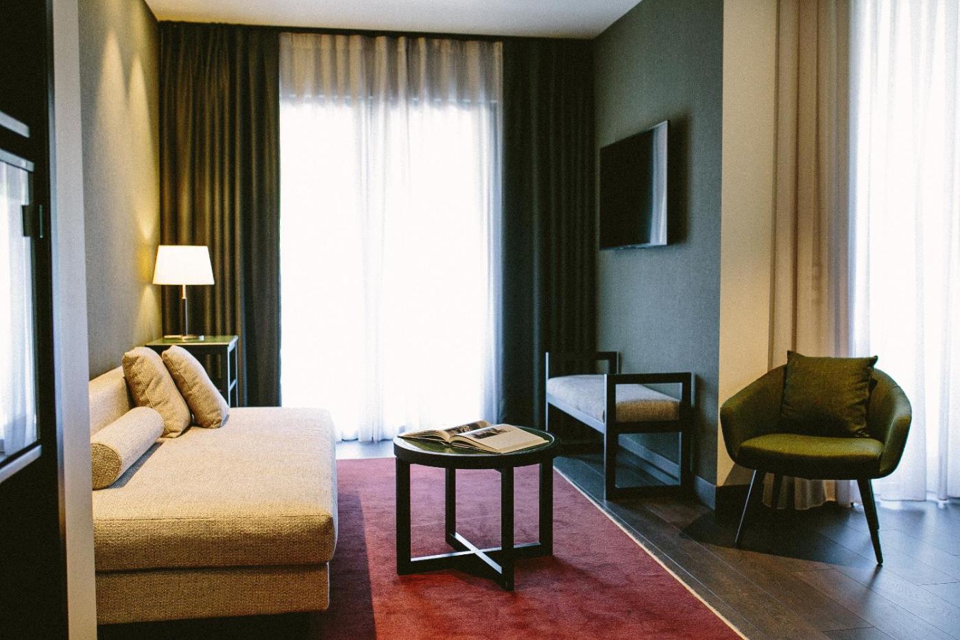 Junior Suite con Balcone. This suite comes with 1 living room, 1 separate bedroom and 1 bathroom with a shower and free toiletries. The air-conditioned suite features a flat-screen TV with satellite channels, soundproof walls, a minibar, a seating area as well as garden views. The unit has 1 bed. ;