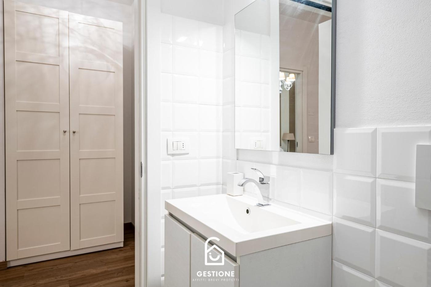 Appartamento con 1 Camera da Letto. This apartment comes with 1 living room, 1 separate bedroom and 1 bathroom with a shower and a bidet. Meals can be prepared in the kitchen, which features a stovetop, a refrigerator, a dishwasher and kitchenware. The apartment features a seating area, a dining area, a wardrobe, a flat-screen TV with streaming services, as well as city views. The unit has 1 bed.