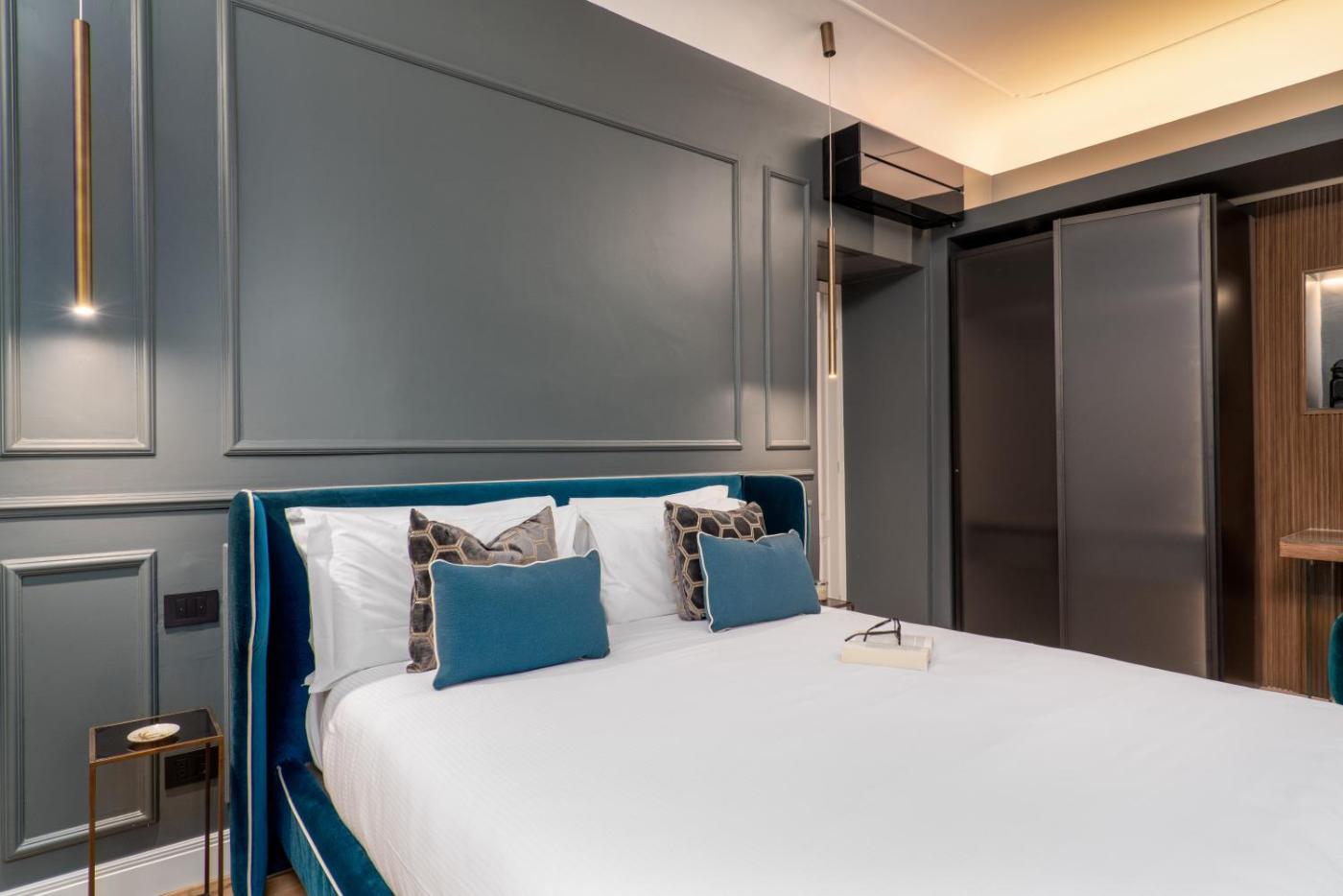 Camera Deluxe. Camera matrimoniale con camino. La camera matrimoniale è dotata di bagno privato con doccia, asciugacapelli, bidet,di cortesia e accappatoi. Inoltre dispone di aria condizionata, TV a schermo piatto con canali via cavo, pareti insonorizzate, minibar eper la preparazione di tè e caffè. L’alloggio presenta 1 letto. ;