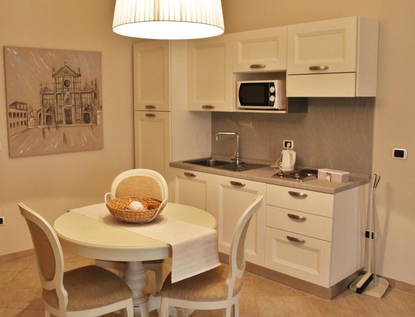 Monolocale. Appartamento dotato di aria condizionata, TV satellitare, angolo cottura completamente attrezzato con forno a microonde, e bagno privato con asciugacapelli, accappatoi edi cortesia. A disposizione la connessione WiFi gratuita. ;