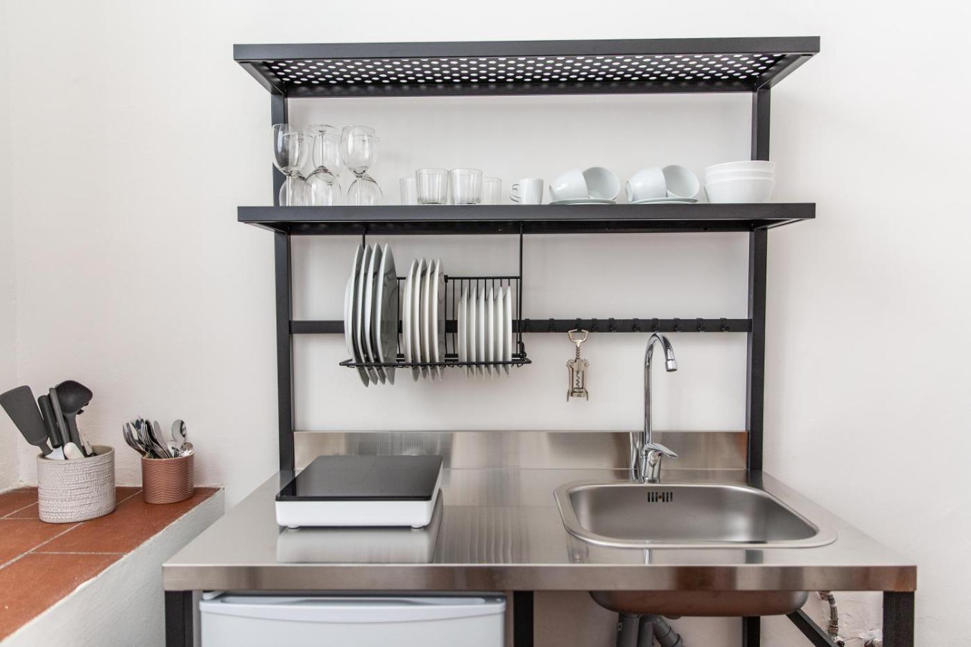 Questo appartamento con aria condizionata comprende 1 camera da letto e 1 bagno con doccia edi cortesia. Langolo cottura include un frigorifero.