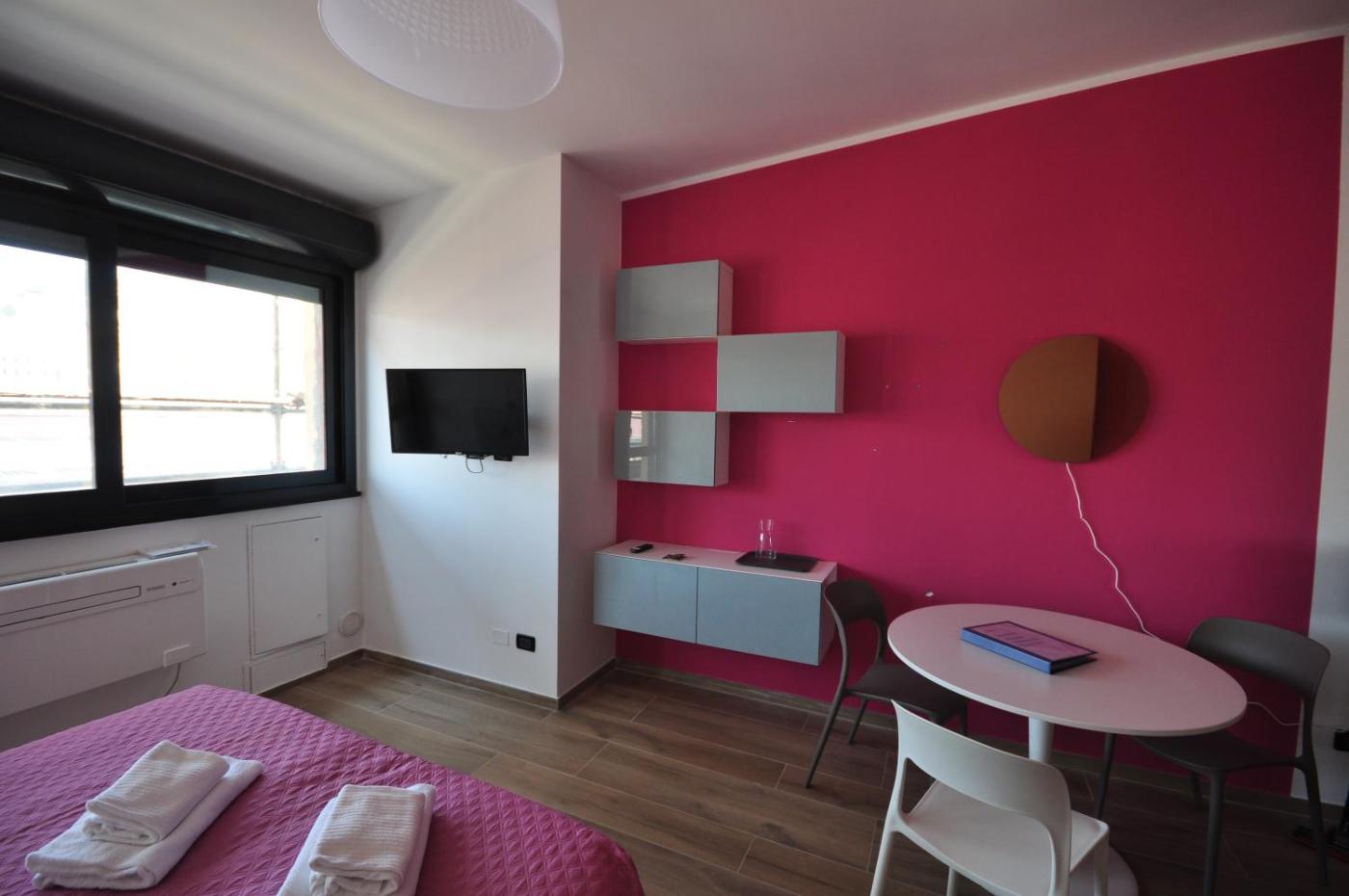 Appartamento Monolocale. The air-conditioned apartment features 1 bedroom and 1 bathroom with a walk-in shower and a hairdryer. Meals can be prepared in the kitchen, which is fitted with a stovetop, a refrigerator, kitchenware and a microwave. This wheelchair accessible apartment has a washing machine, a seating area with a flat-screen TV and a roll-in shower. The unit offers 2 beds.