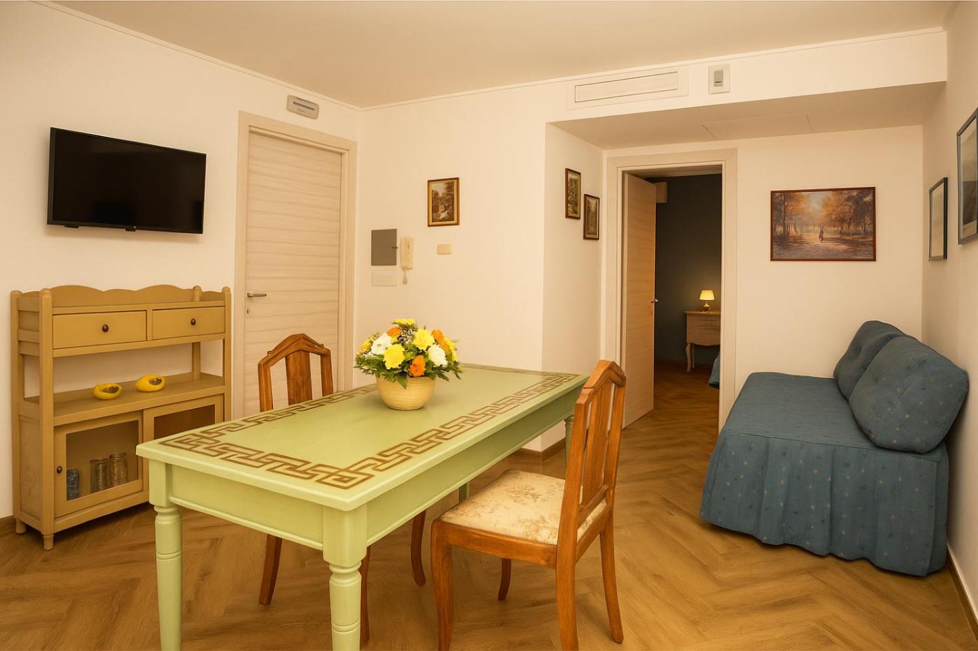 Appartamento Deluxe. Boasting a private entrance, this air-conditioned apartment includes 1 living room, 1 separate bedroom and 1 bathroom with a walk-in shower and a bidet. In the well-equipped kitchen, guests will find a stovetop, a refrigerator, kitchenware and a microwave. A seating area with a flat-screen TV, soundproof walls and a terrace are offered in this spacious apartment. The unit has 2 beds. ;