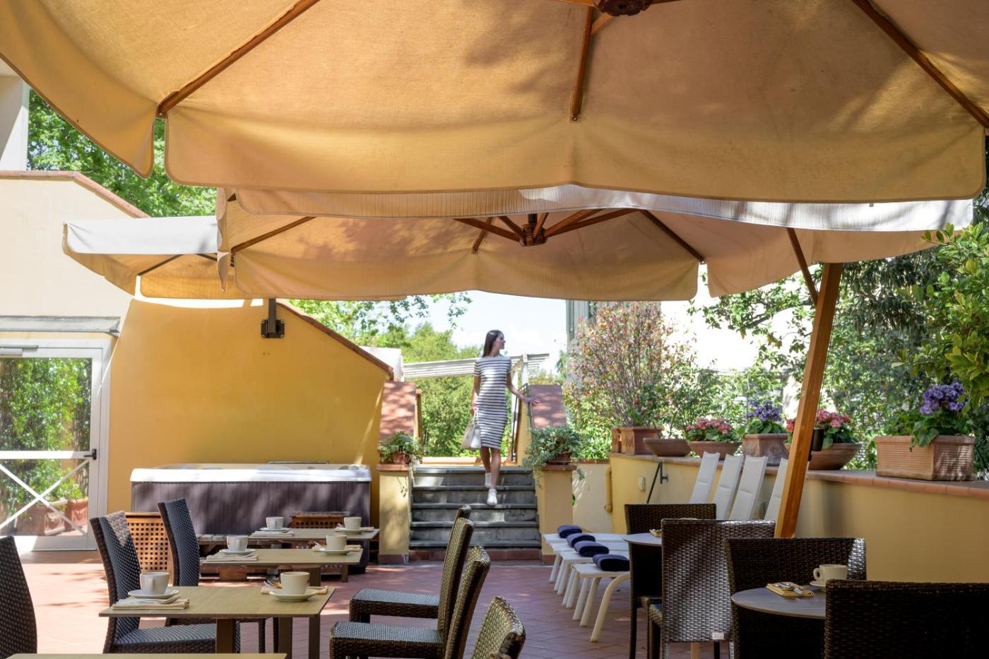 Al termine di una giornata di visite turistiche, potrete tornare in hotel per rilassarvi. Potrete scegliere se gustare un aperitivo gratuito sulla terrazza oppure oppure rilassarvi nella vasca idromassaggio ammirando i giardini rigogliosi.