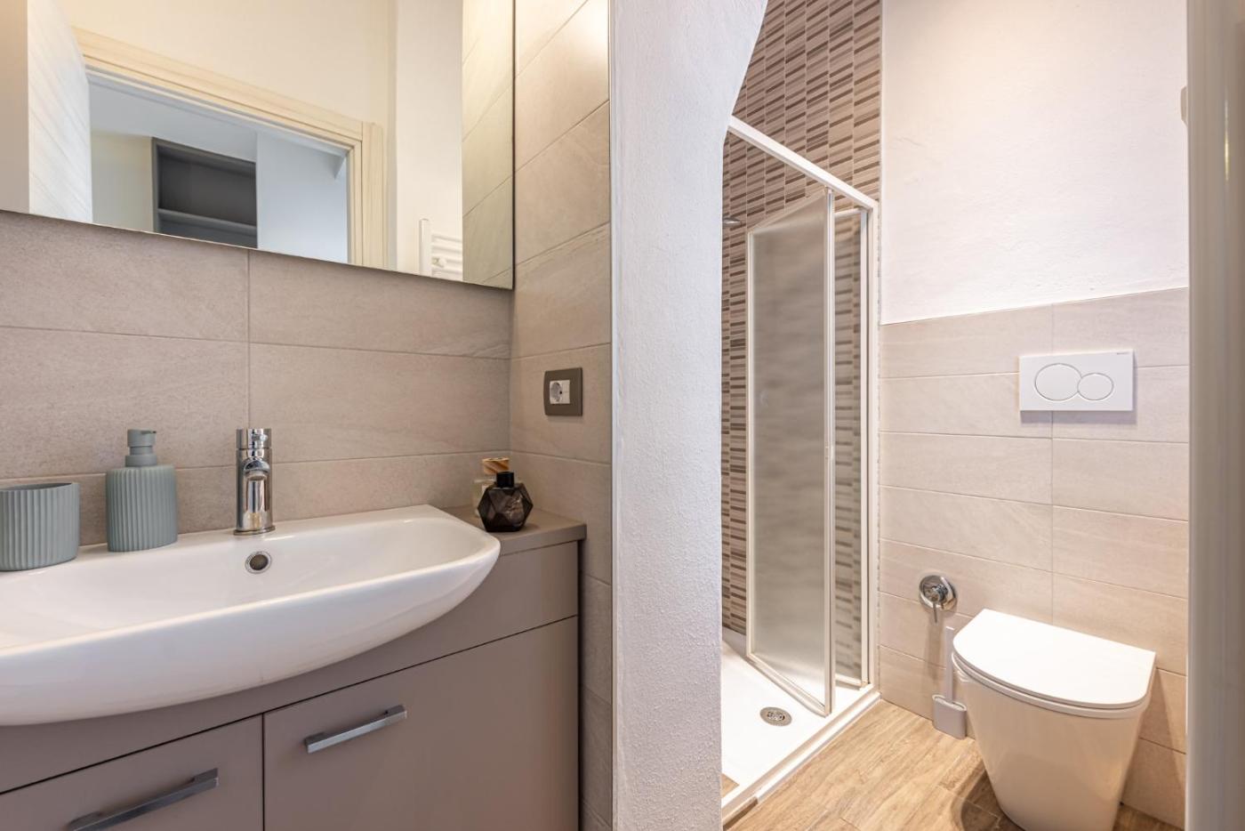 Appartamento con 2 Camere da Letto. This spacious apartment is comprised of 1 living room, 2 separate bedrooms and 2 bathrooms with a shower and free toiletries. The well-fitted kitchen features a stovetop, a refrigerator, a dishwasher and kitchenware. The apartment is furnished with a desk and a seating area and offers air conditioning, a washing machine and ancourtyard view. The unit offers 4 beds.