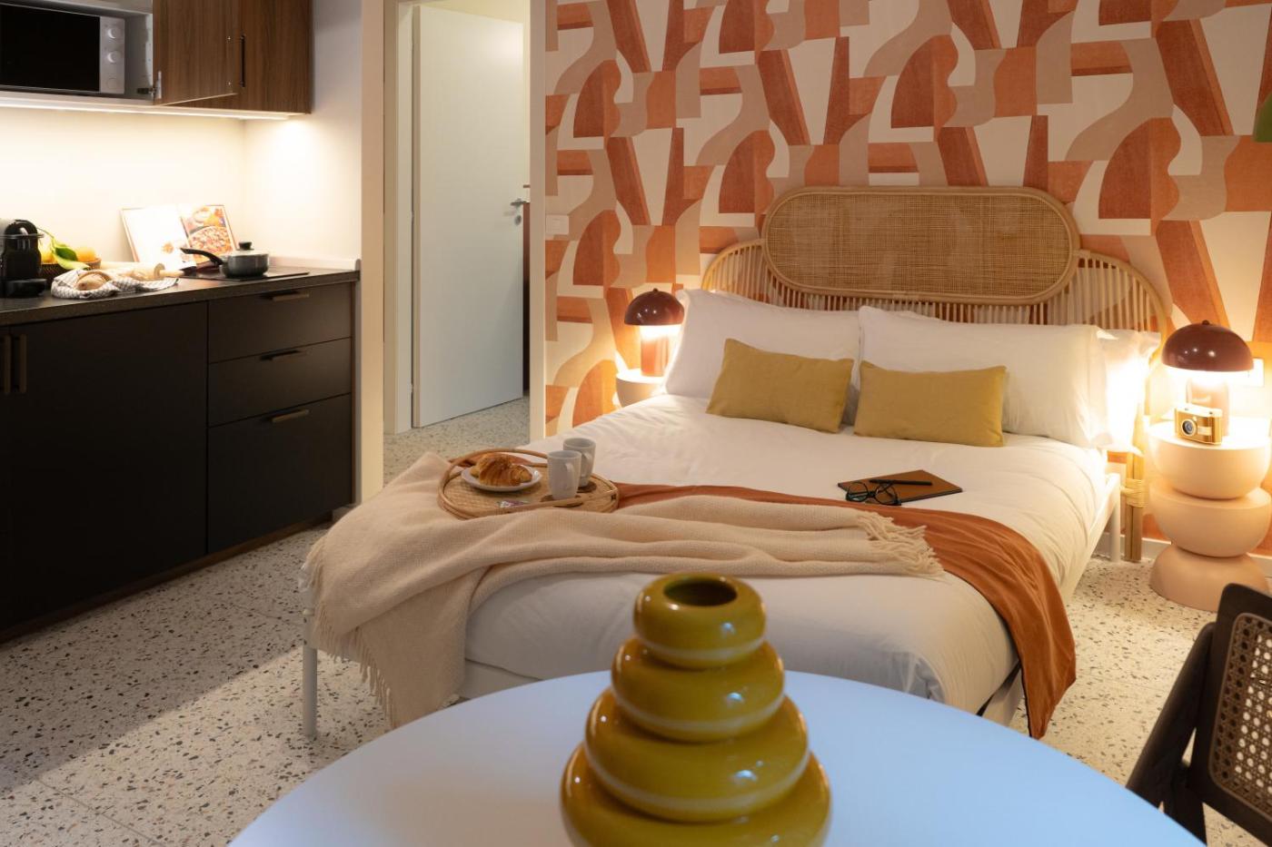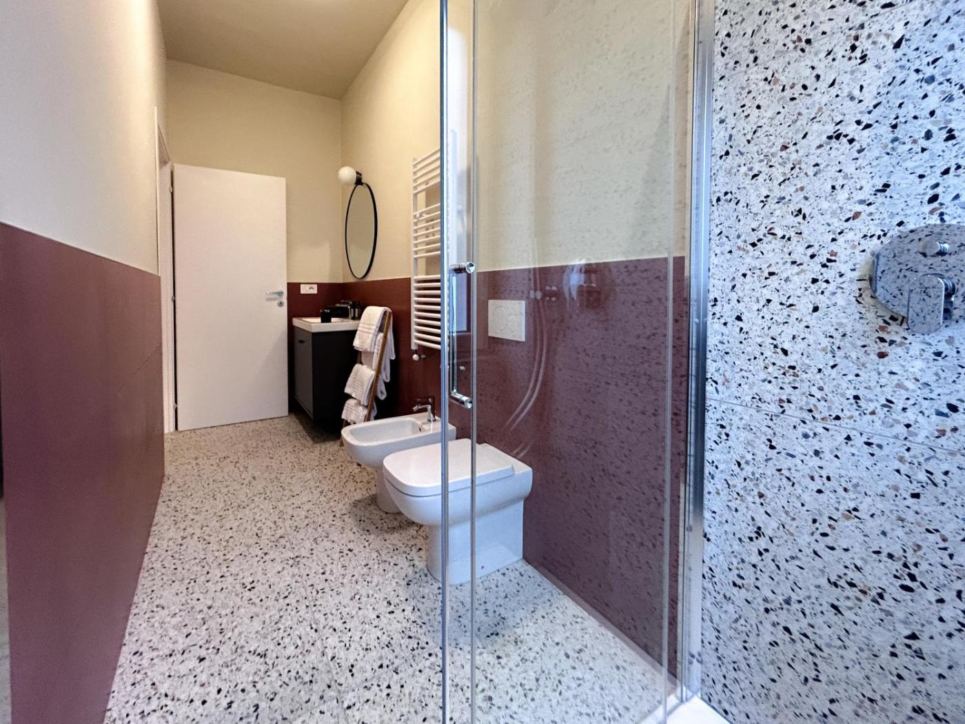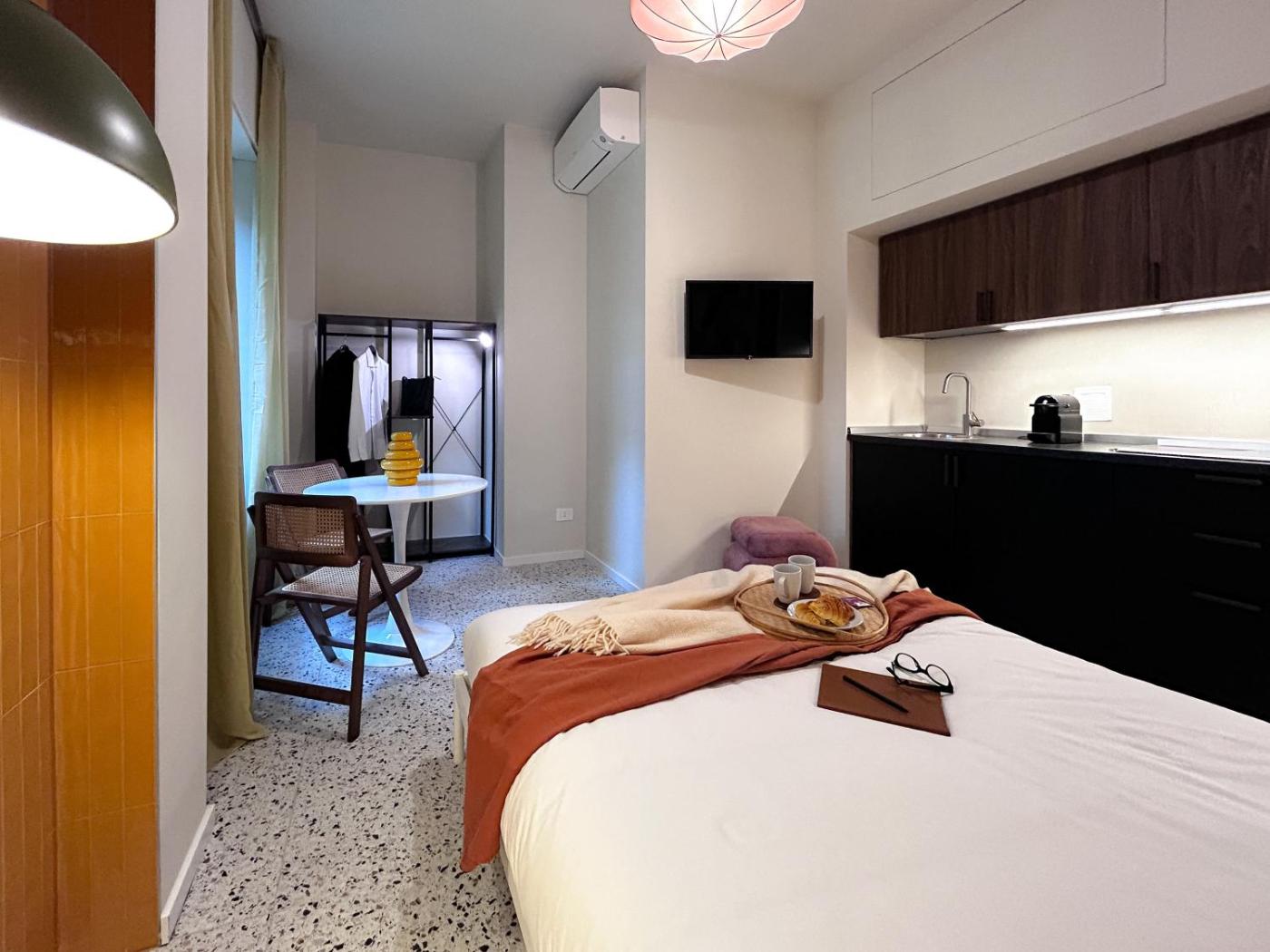 Monolocale Queen Deluxe. The kitchen features a refrigerator, kitchenware and a microwave. The studio features air conditioning, soundproof walls, as well as a private bathroom boasting a shower and a bidet. The unit has 1 bed.