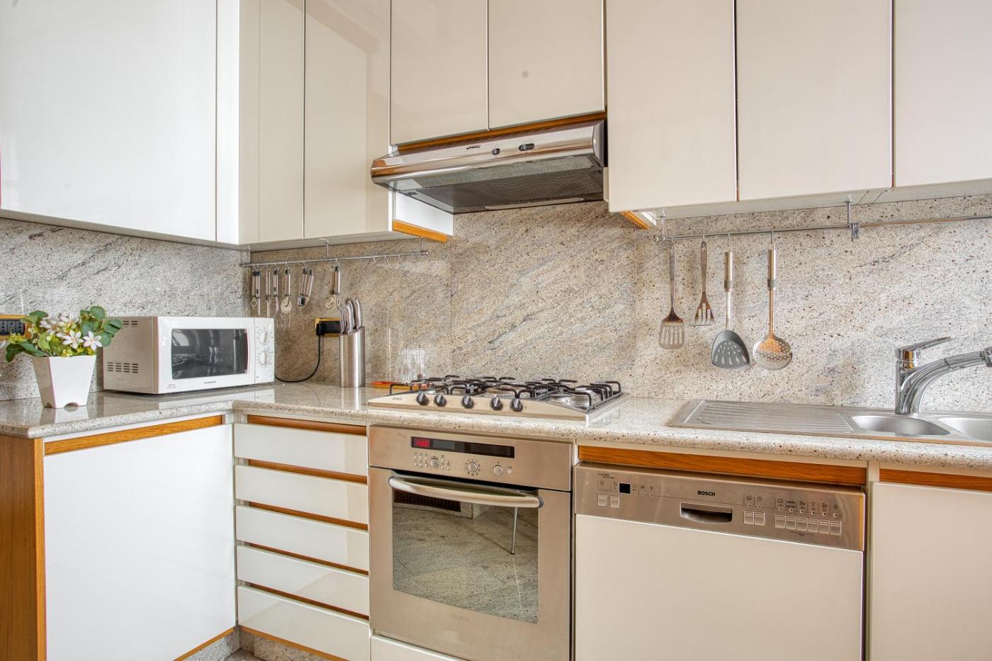 Appartamento con 1 Camera da Letto. This spacious apartment comes with 1 living room, 1 separate bedroom and 2 bathrooms with a bath and a shower. The fully equipped kitchen features a stovetop, a refrigerator, a dishwasher and an oven. This apartment is air-conditioned and has a seating area with a TV, a washing machine, a dining area, a wardrobe, as well as a sofa. The unit has 2 beds.