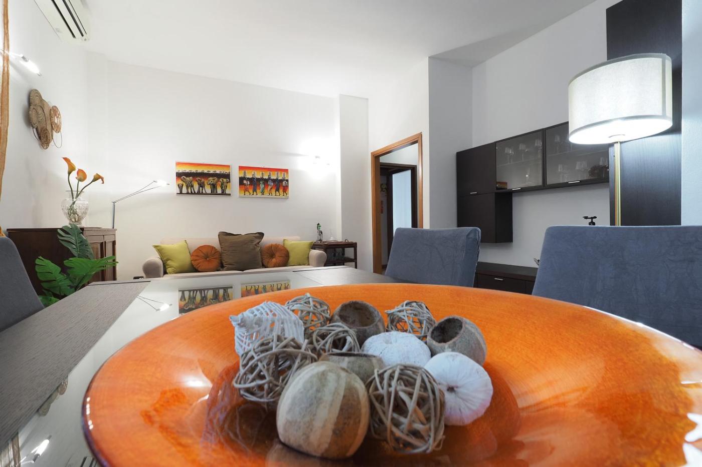 Appartamento con 2 Camere da Letto. Boasting a private entrance, this air-conditioned apartment comes with 1 living room, 2 separate bedrooms and 1 bathroom with a shower and a bidet. In the well-fitted kitchen, guests will find a stovetop, a refrigerator, kitchenware and an oven. A seating area with a flat-screen TV, a washing machine and a balcony are available in this spacious apartment. The unit has 2 beds.