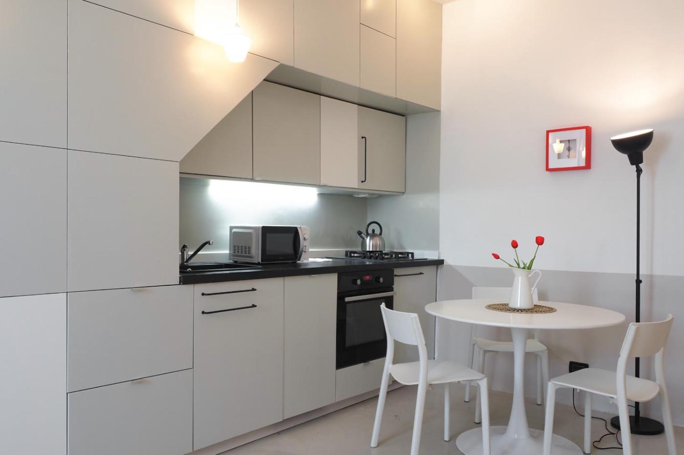 Appartamento con 1 Camera da Letto. This air-conditioned apartment consists of 1 living room, 1 separate bedroom and 1 bathroom with a shower. Guests can make meals in the kitchen that is equipped with a stovetop, a refrigerator, a dishwasher and kitchenware. The apartment provides a washing machine, a dining area, a wardrobe, an electric kettle, as well as a flat-screen TV. The unit offers 2 beds.