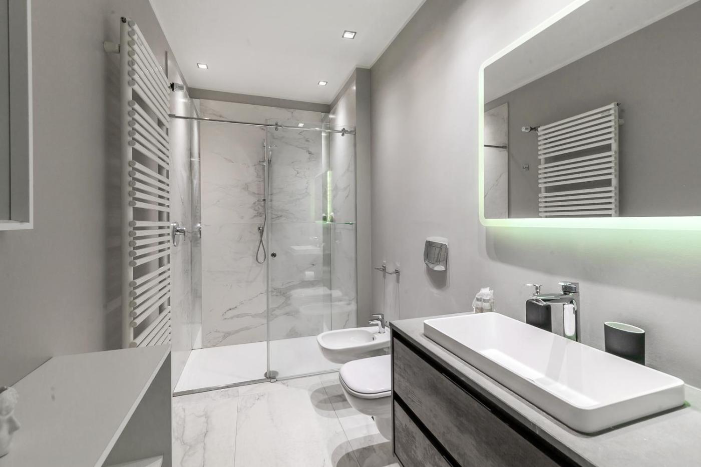 Appartamento Premium con 1 Camera da Letto. Featuring a private entrance, this air-conditioned apartment comprises a kitchen, 1 bedroom and 1 bathroom with a shower and a bidet. The well-fitted kitchen features a stovetop, a refrigerator, a dishwasher and kitchenware. The apartment has tiled floors, a seating area with a flat-screen TV, a washing machine, a tea and coffee maker, as well as a dining area. The unit offers 1 bed.