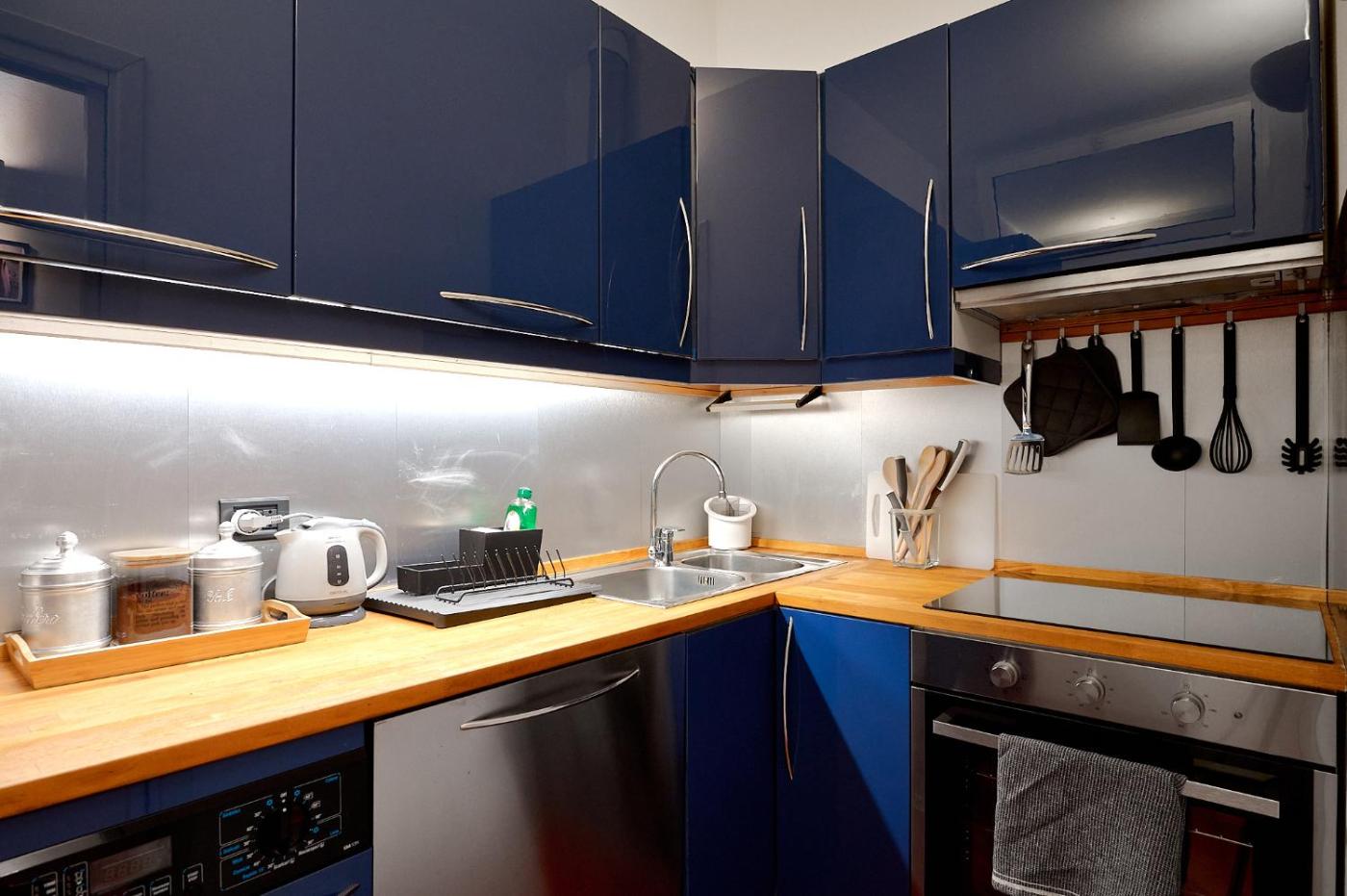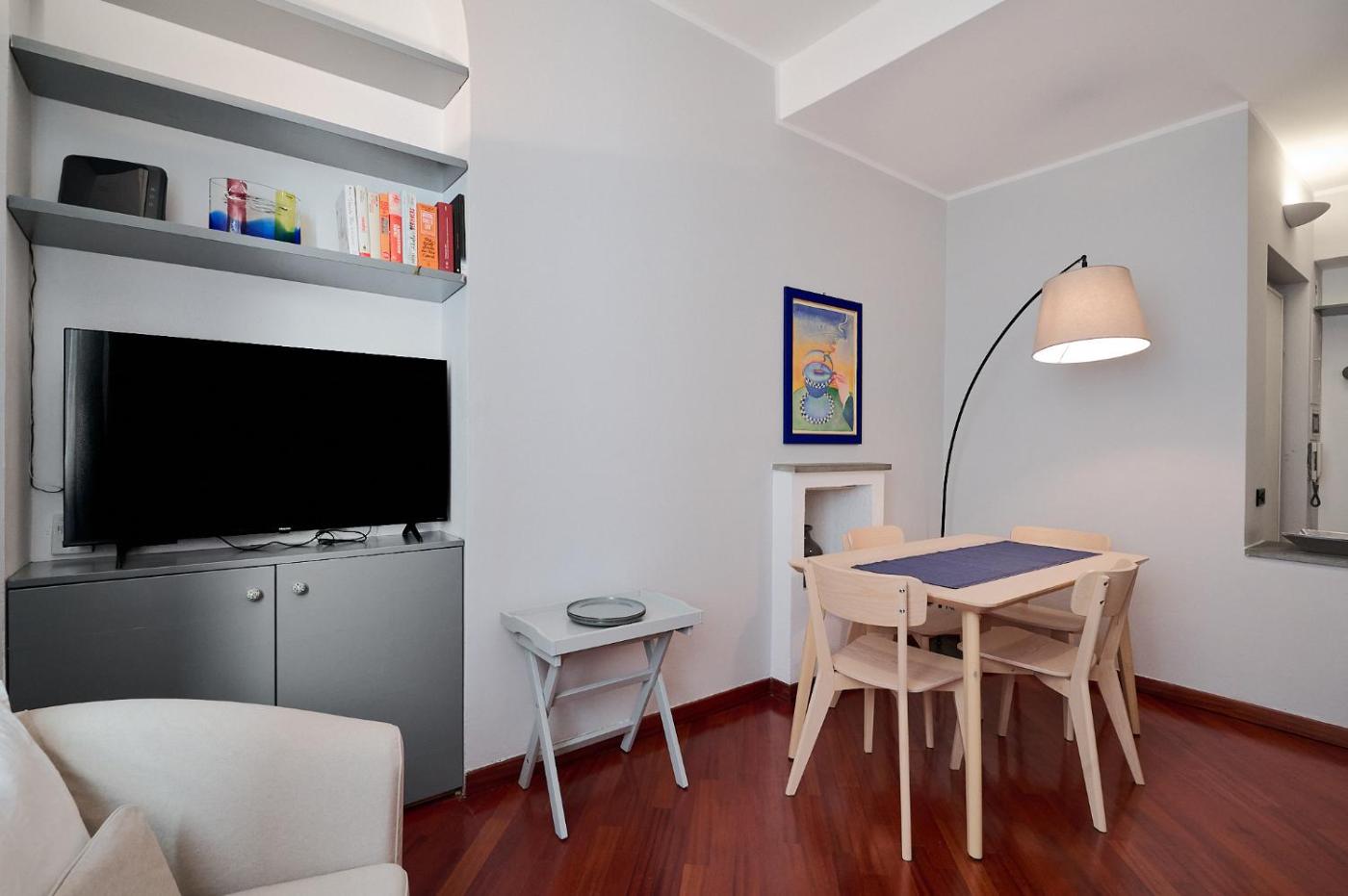 Appartamento con 1 Camera da Letto. This air-conditioned apartment comprises 1 living room, 1 separate bedroom and 1 bathroom with a shower. Guests can make meals in the kitchen that is equipped with a stovetop, a refrigerator, a dishwasher and kitchenware. The apartment is furnished with a desk and a seating area and provides a washing machine and a tea and coffee maker. The unit offers 2 beds.
