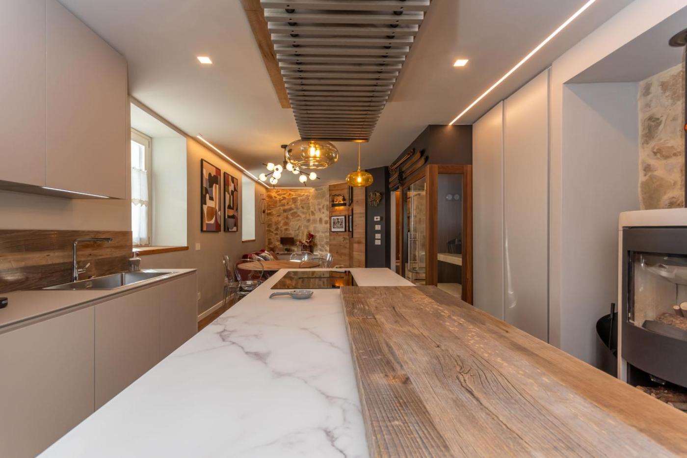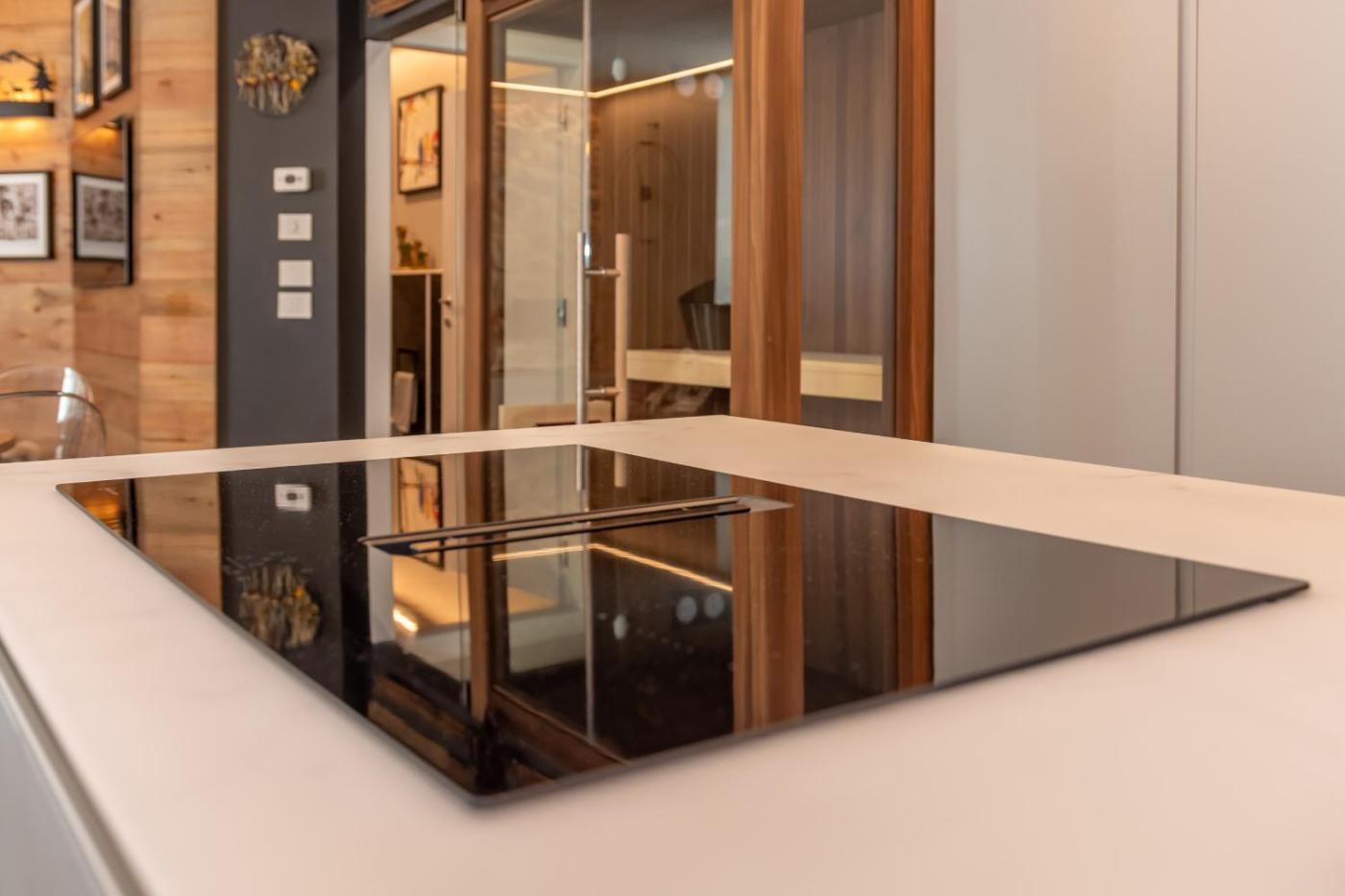 Appartamento con Sauna. This apartment offers a sauna. This spacious apartment comprises 2 bedrooms, a kitchen and 2 bathrooms with a shower and a hairdryer. Guests can make meals in the kitchen that comes with a refrigerator, a dishwasher, kitchenware and an oven. The apartment provides a washing machine, a tea and coffee maker, heating, a TV, as well as mountain views. The unit offers 4 beds.