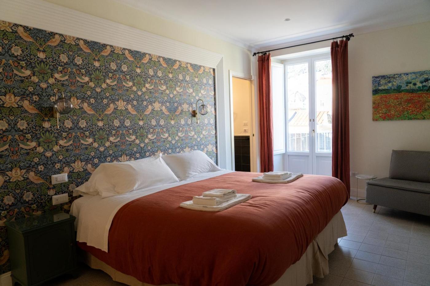 Camera Matrimoniale. Camera matrimoniale dotata di bagno privato con doccia,di cortesia, bidet e asciugacapelli. È climatizzata e provvista di TV a schermo piatto, pareti insonorizzate, armadio, bollitore elettrico e vista sul cortile interno. Lalloggio dispone di 1 letto. ;