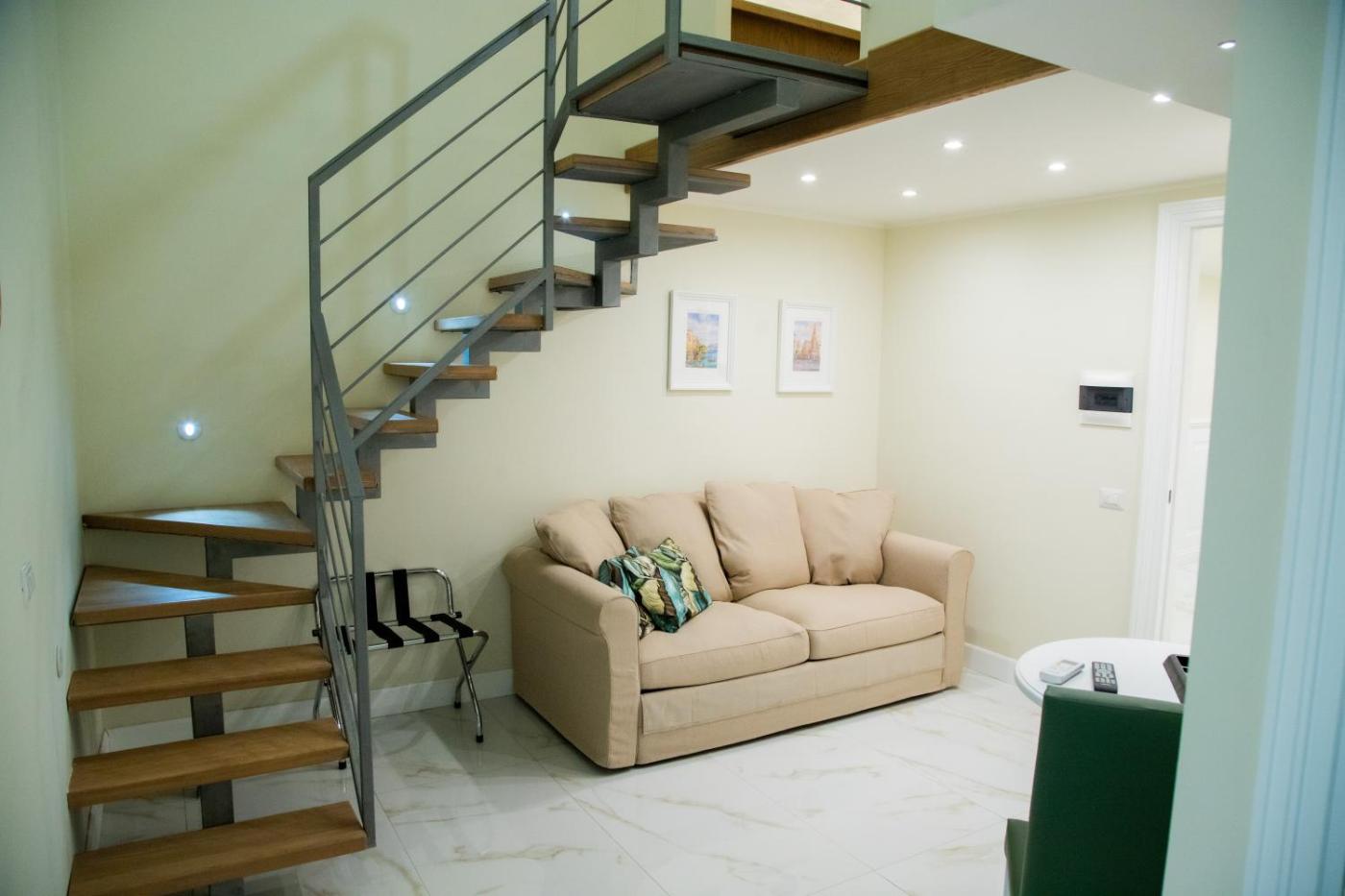 Suite con Vasca Idromassaggio. Guests will have a special experience as this suite offers a hot tub and a spa bath. This suite includes 1 living room, 1 separate bedroom and 1 bathroom with a shower and free toiletries. This suite is air-conditioned and has a seating area with a flat-screen TV, soundproof walls, a minibar, a tea and coffee maker, as well as a wardrobe. The unit has 1 bed.