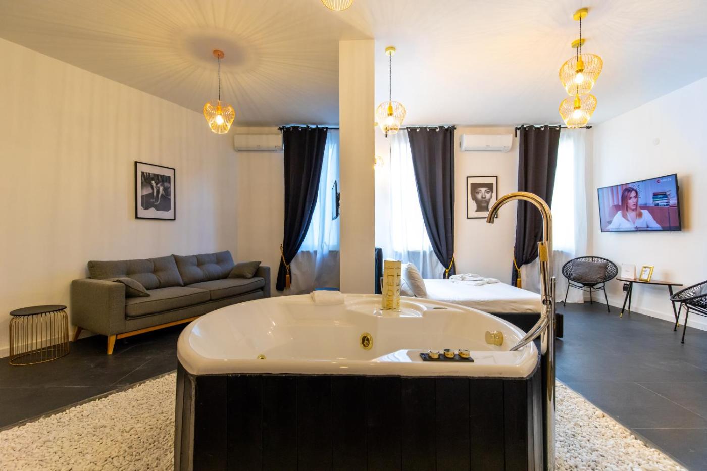 Appartamento Deluxe. Boasting a private entrance, this air-conditioned apartment comes with 1 living room, 1 separate bedroom and 1 bathroom with a shower and a bidet. Guests can make meals in the kitchen that features a stovetop, a refrigerator, kitchenware and a tea and coffee maker. The apartment features a flat-screen TV, a wardrobe, a safe deposit box, a sofa as well as city views. The unit has 2 beds. ;