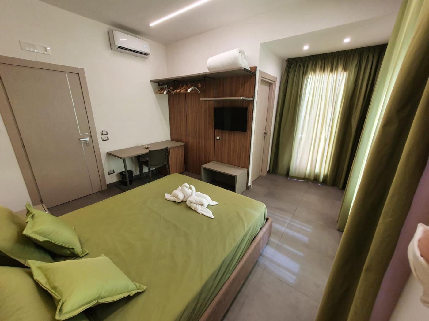 Camera Quadrupla Luxury. Camera quadrupla dotata di bagno privato con doccia, bidet, asciugacapelli edi cortesia. La sistemazione è climatizzata e dispone di TV a schermo piatto con canali via cavo, ingresso indipendente, pareti insonorizzate, minibar e vista sulla strada tranquilla. L’alloggio offre 2 letti. ;