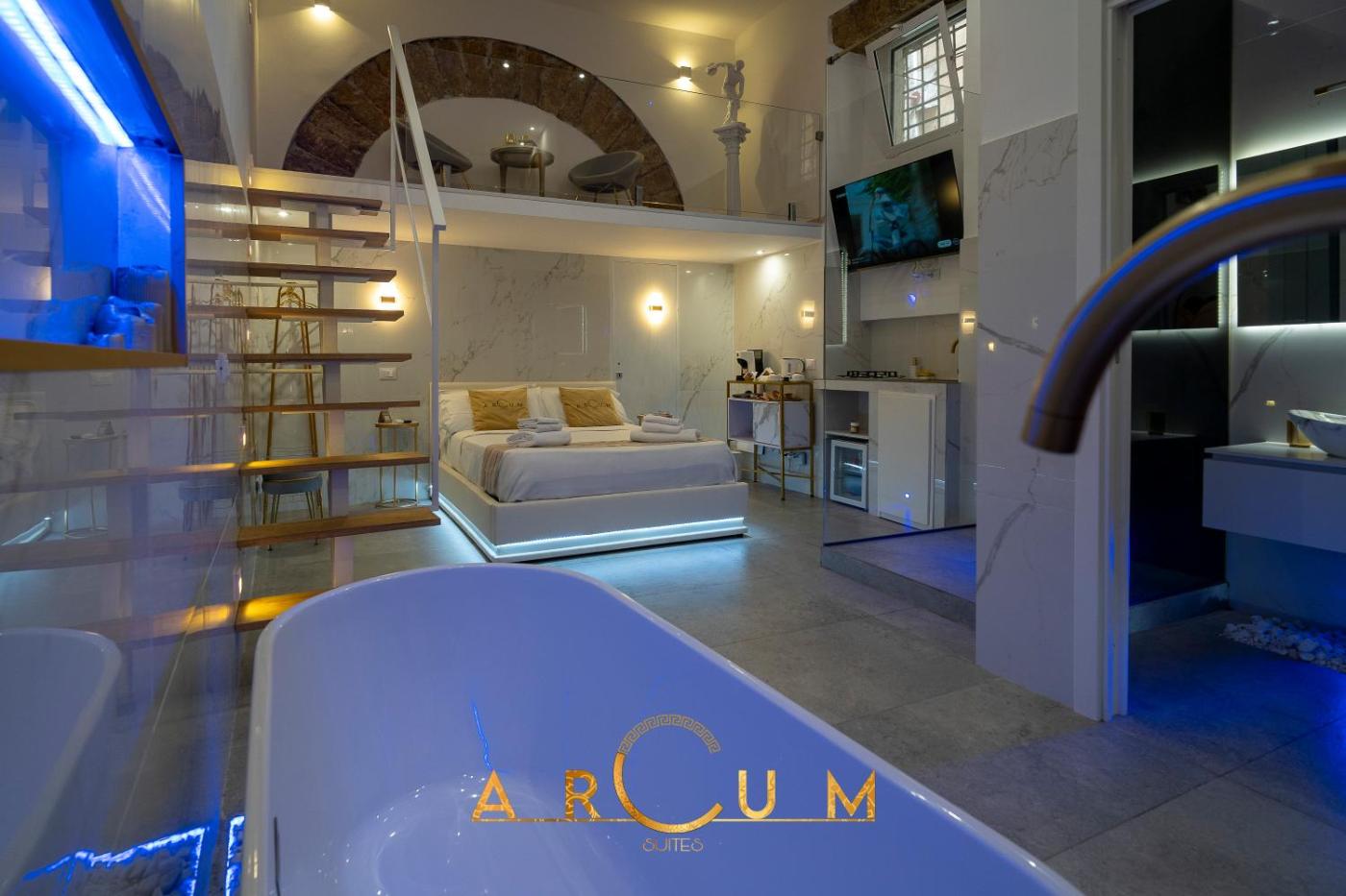 Questo affittacamere offre agli ospiti camere climatizzate dotate di armadio, macchina da caffè, frigorifero, minibar, cassaforte, TV a schermo piatto e bagno privato con bidet. Il WiFi gratuito è a disposizione per tutti gli ospiti, mentre alcune camere presentano un balcone. Presso ARCUM suites, ogni camera comprende lenzuola e asciugamani.