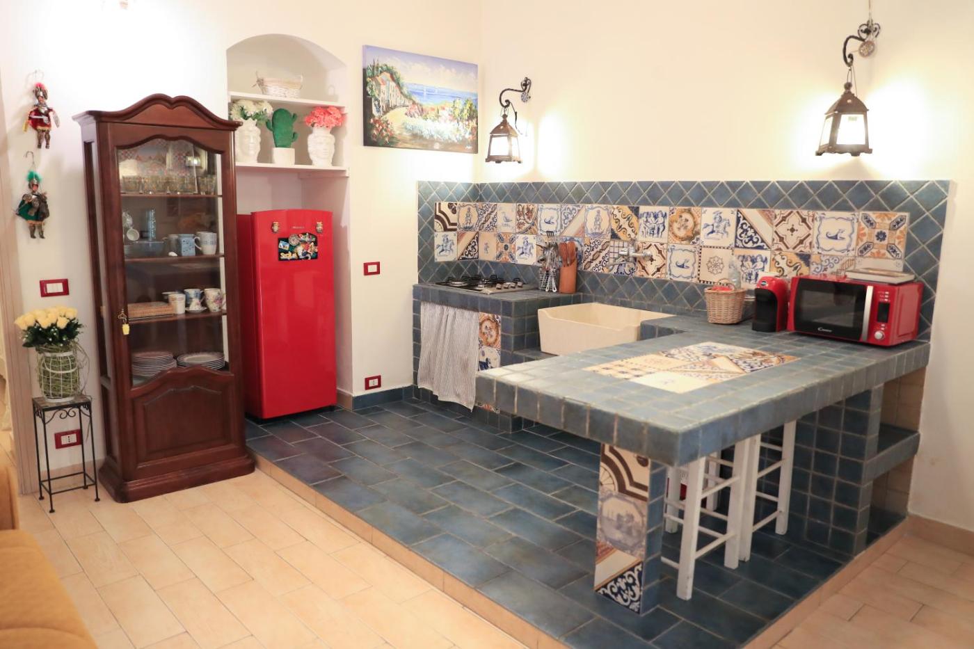 Questa casa vacanze con aria condizionata comprende 1 camera da letto, un soggiorno, una cucina con utensili, frigorifero e macchina da caffè, e 1 bagno con bidet e doccia. Presso questa casa vacanze troverete asciugamani e lenzuola a disposizione.