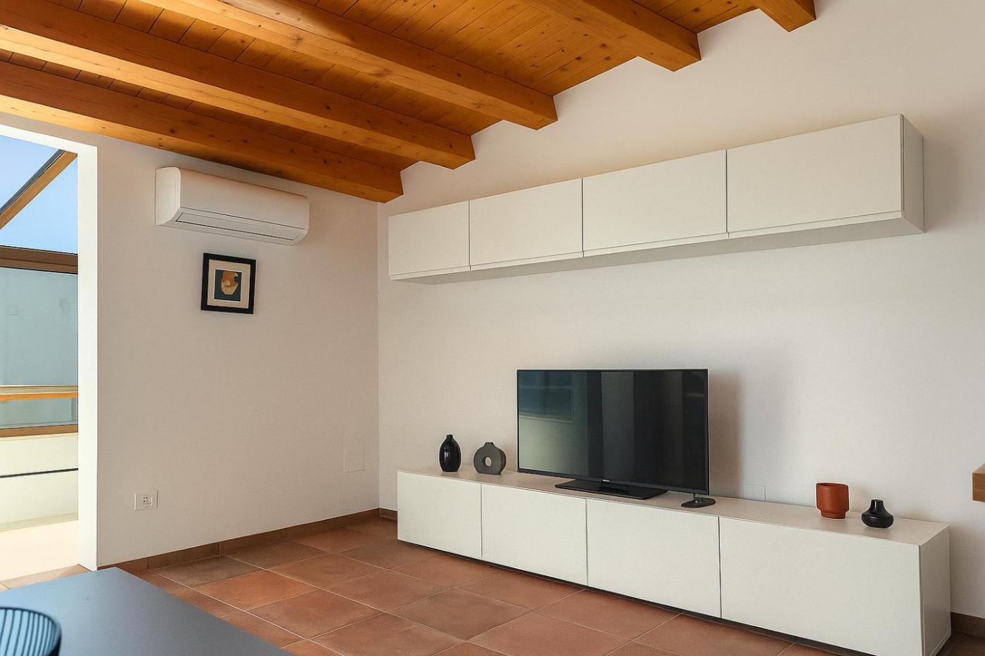 Appartamento con Terrazza. This spacious apartment is comprised of 1 living room, 1 separate bedroom and 2 bathrooms with a shower and free toiletries. Guests can make meals in the kitchen that is fitted with a stovetop, a refrigerator, kitchenware and a microwave. The air-conditioned apartment offers a flat-screen TV with streaming services, a washing machine, a tea and coffee maker, a seating area as well as mountain views. The unit offers 2 beds.