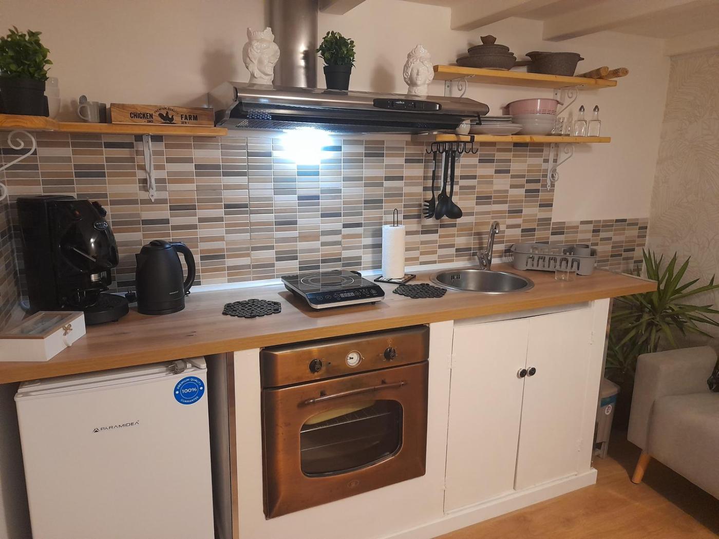 Casa con 1 Camera da Letto. Featuring a private entrance, this air-conditioned holiday home comprises a kitchen, 1 bedroom and 1 bathroom with a walk-in shower and a hairdryer. In the kitchen, guests will find a stovetop, a refrigerator, kitchenware and a tea and coffee maker. This holiday home features soundproof walls, flat-screen TV, ancourtyard view, as well as winechampagne for guests. The unit offers 1 bed.