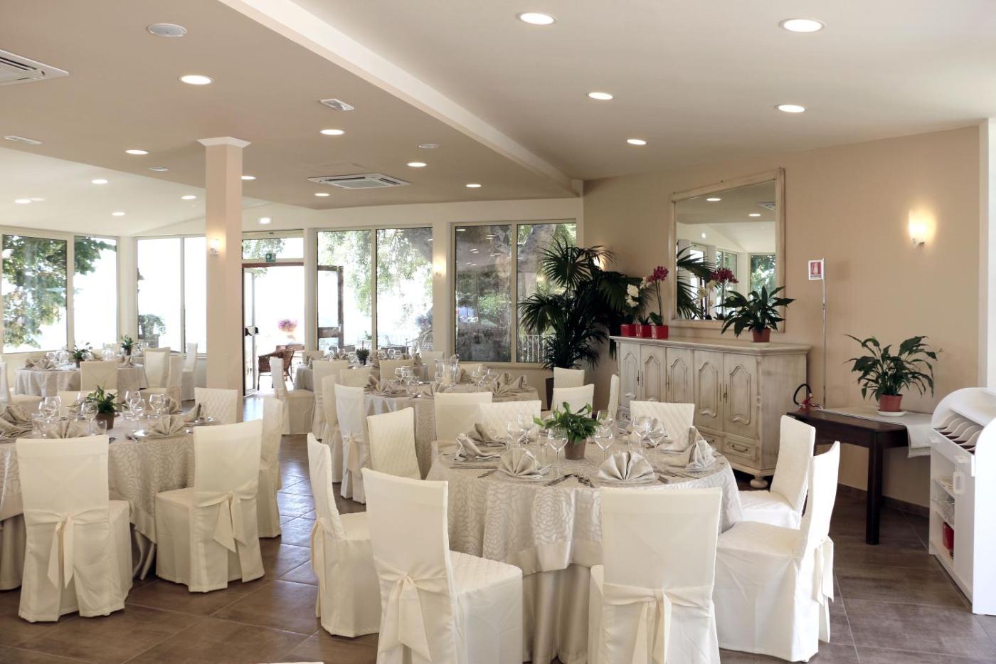 La prima colazione, a base di pietanze dolci e salate, viene servita presso il ristorante durante linverno e sulla terrazza in estate. Il ristorante propone un menù fisso di cucina siciliana ed è aperto tutti i giorni. Il bar vi attende con bevande e snack leggeri.