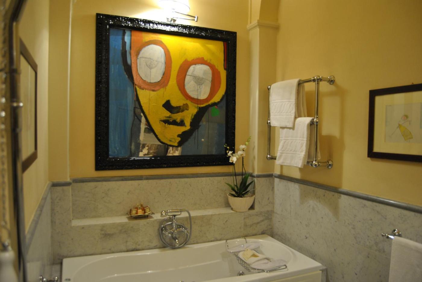 Camera Matrimoniale. Ubicata al piano terra, questa camera è arredata con mobili d’epoca. La sistemazione include un bagno privato in marmo con vasca idromassaggio e antico lavandino in marmo bianco di Carrara. L’alloggio non può accogliere letti supplementari. ;