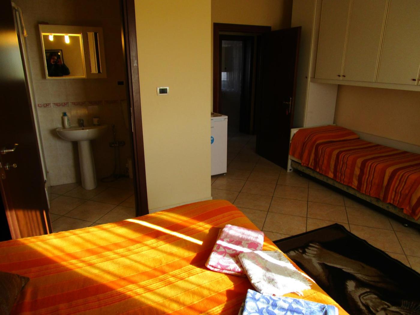 Camera Tripla con Bagno Privato. Camera tripla dotata di bagno privato, terrazza e comfort quali aria condizionata, lavatrice e armadio. ;
