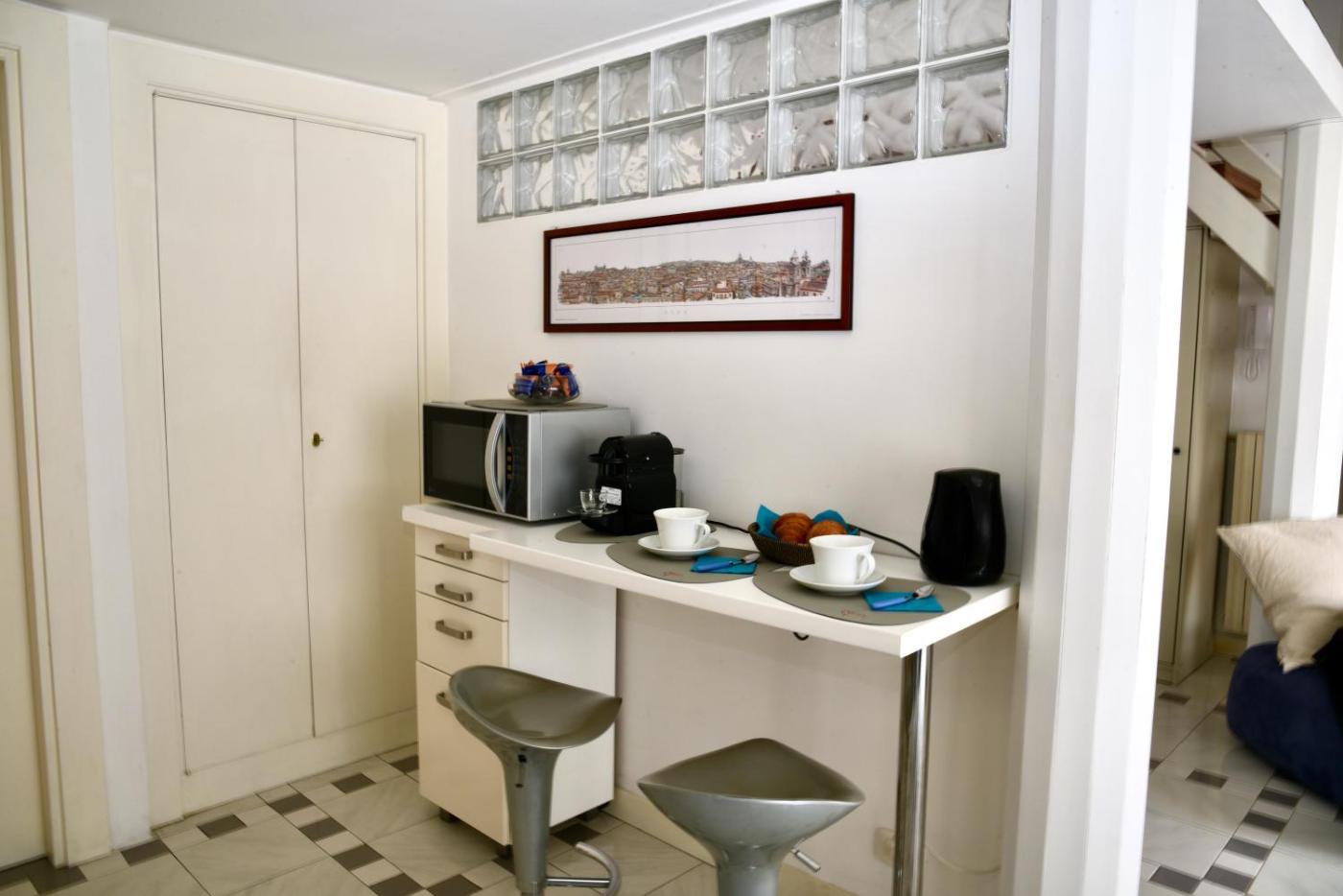 Appartamento con 1 Camera da Letto. This air-conditioned apartment includes 1 living room, 1 separate bedroom and 1 bathroom with a shower. Meals can be prepared in the kitchenette, which is fitted with a stovetop, a refrigerator, kitchenware and a microwave. The apartment offers a washing machine, a tea and coffee maker, a seating area, a flat-screen TV with cable channels, as well as ancourtyard view. The unit has 2 beds.